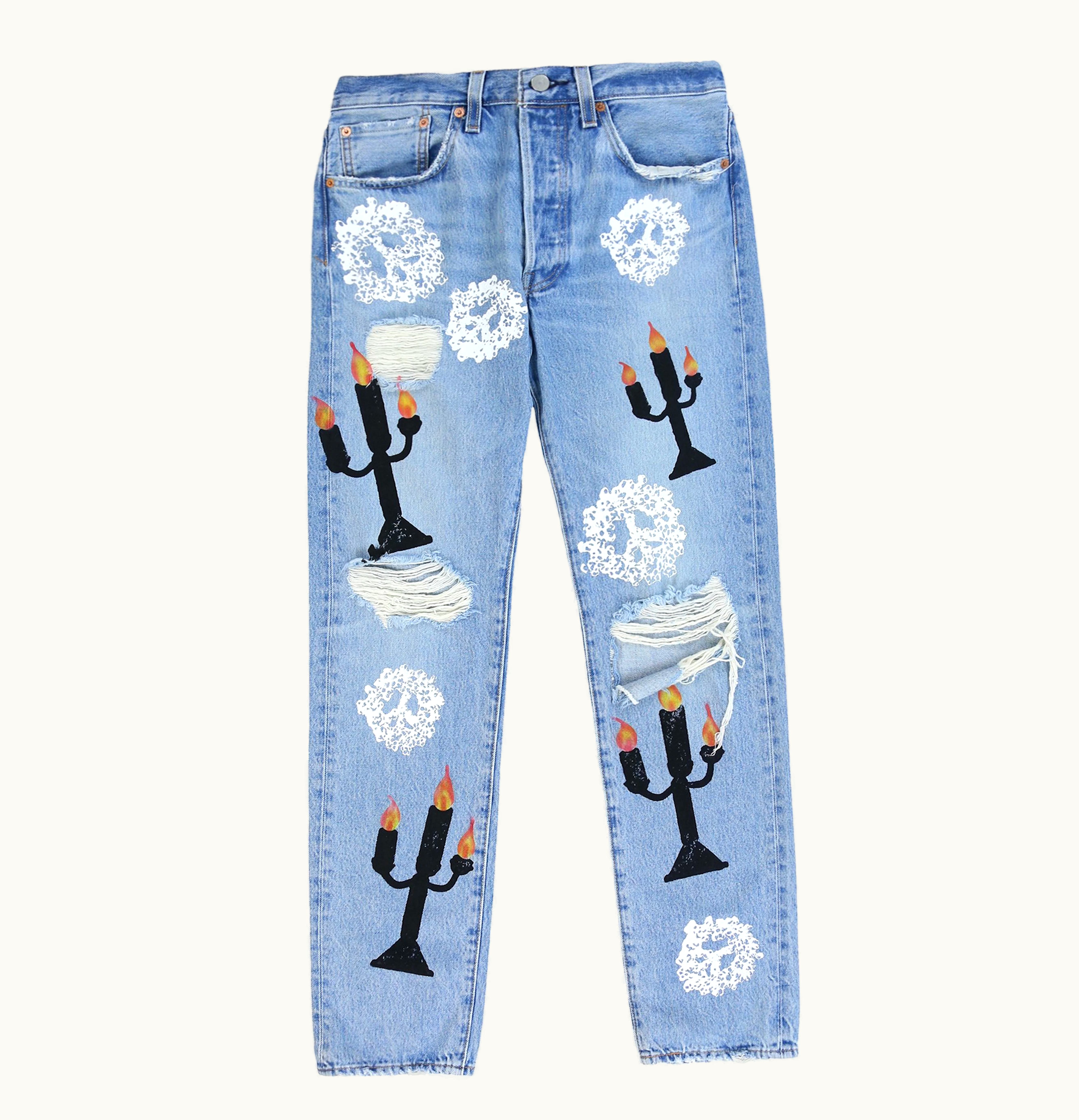 Denim Tears x Virgil Abloh Message in a Tear Printed Jeans Blue | GLINT