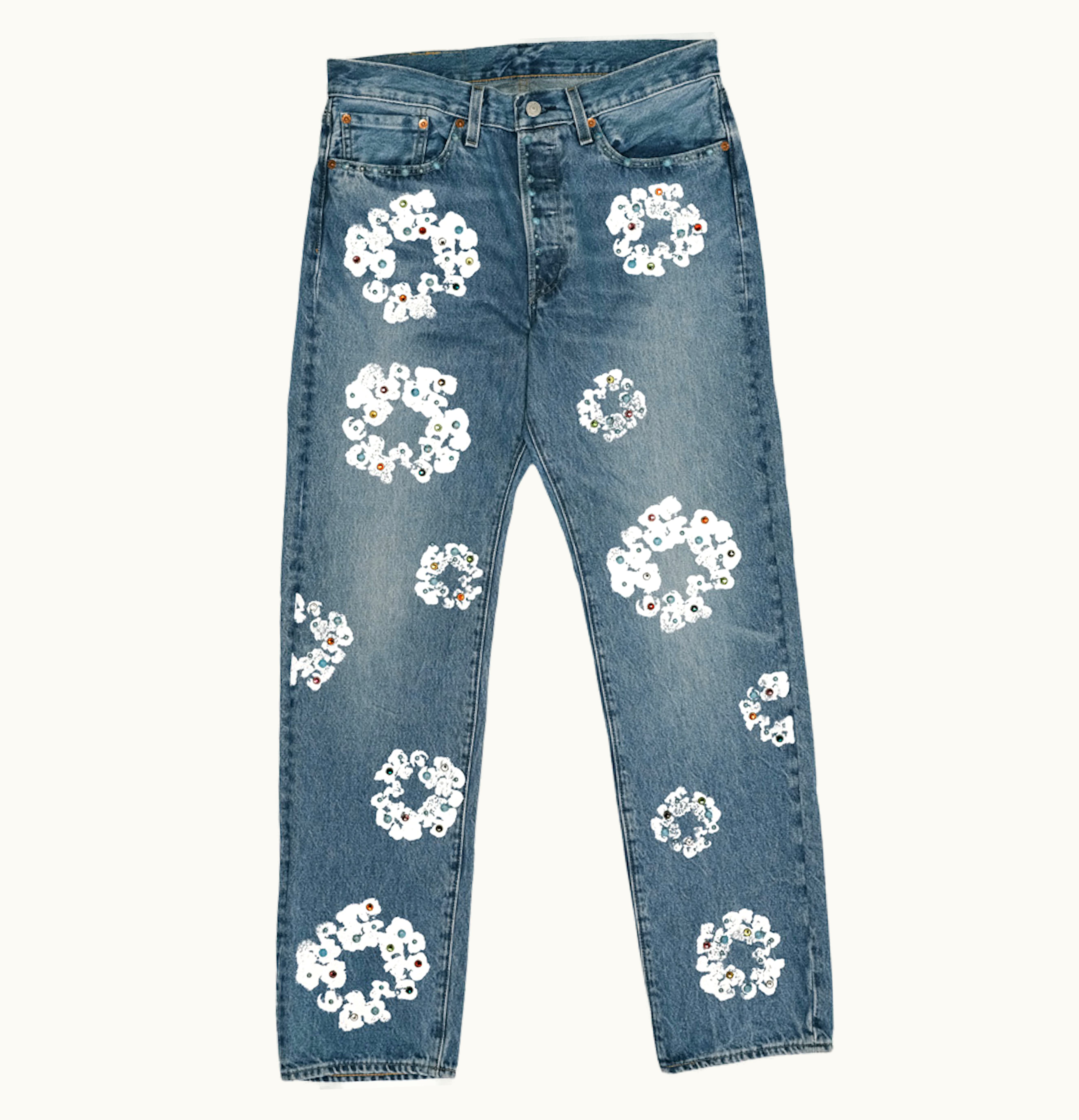Denim Tears x Levis 501 Cotton Rhinestone Wreath Jeans Indigo | GLINT