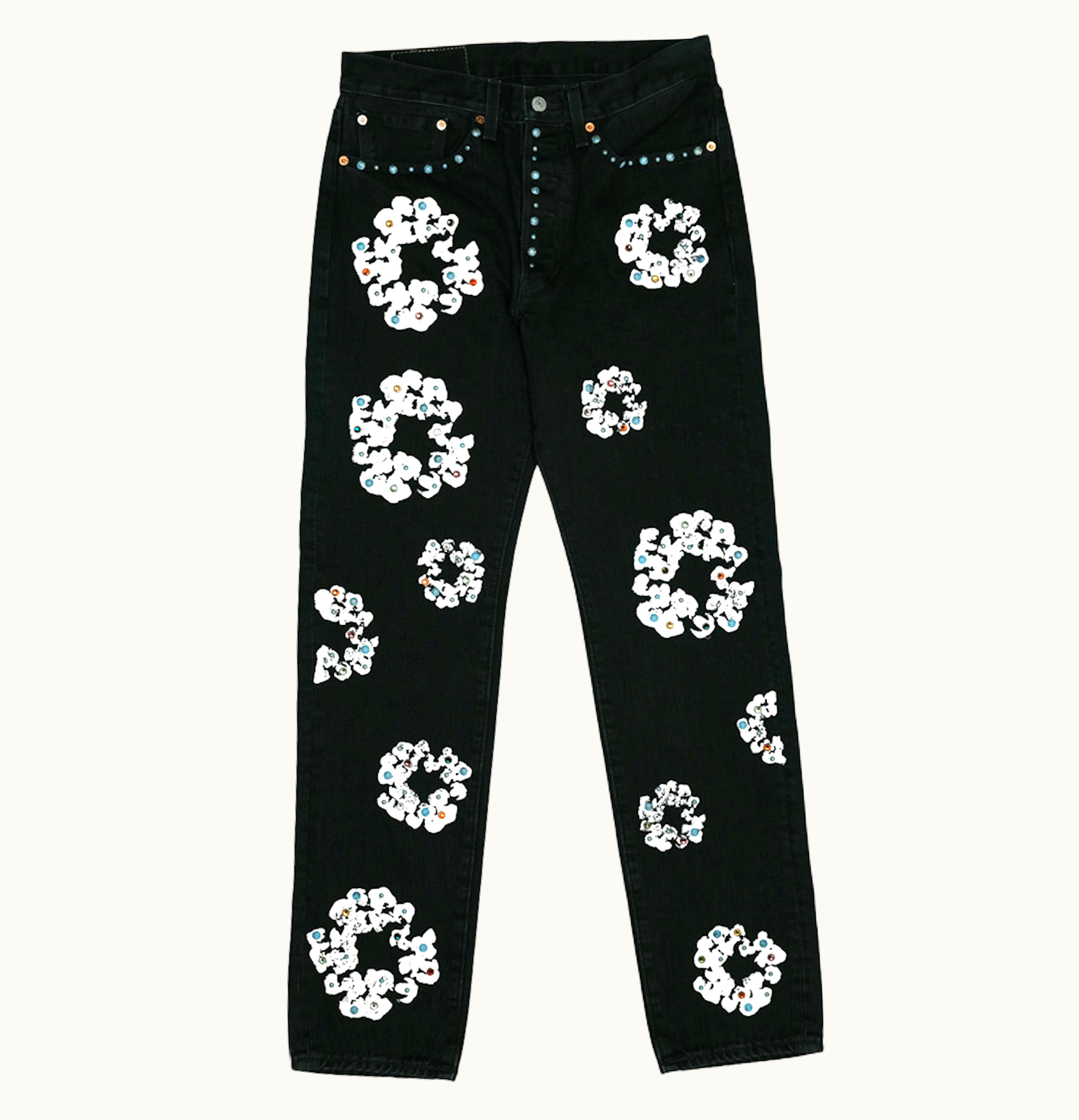 Denim Tears x Levis 501 Cotton Rhinestone Wreath Jeans Black | GLINT