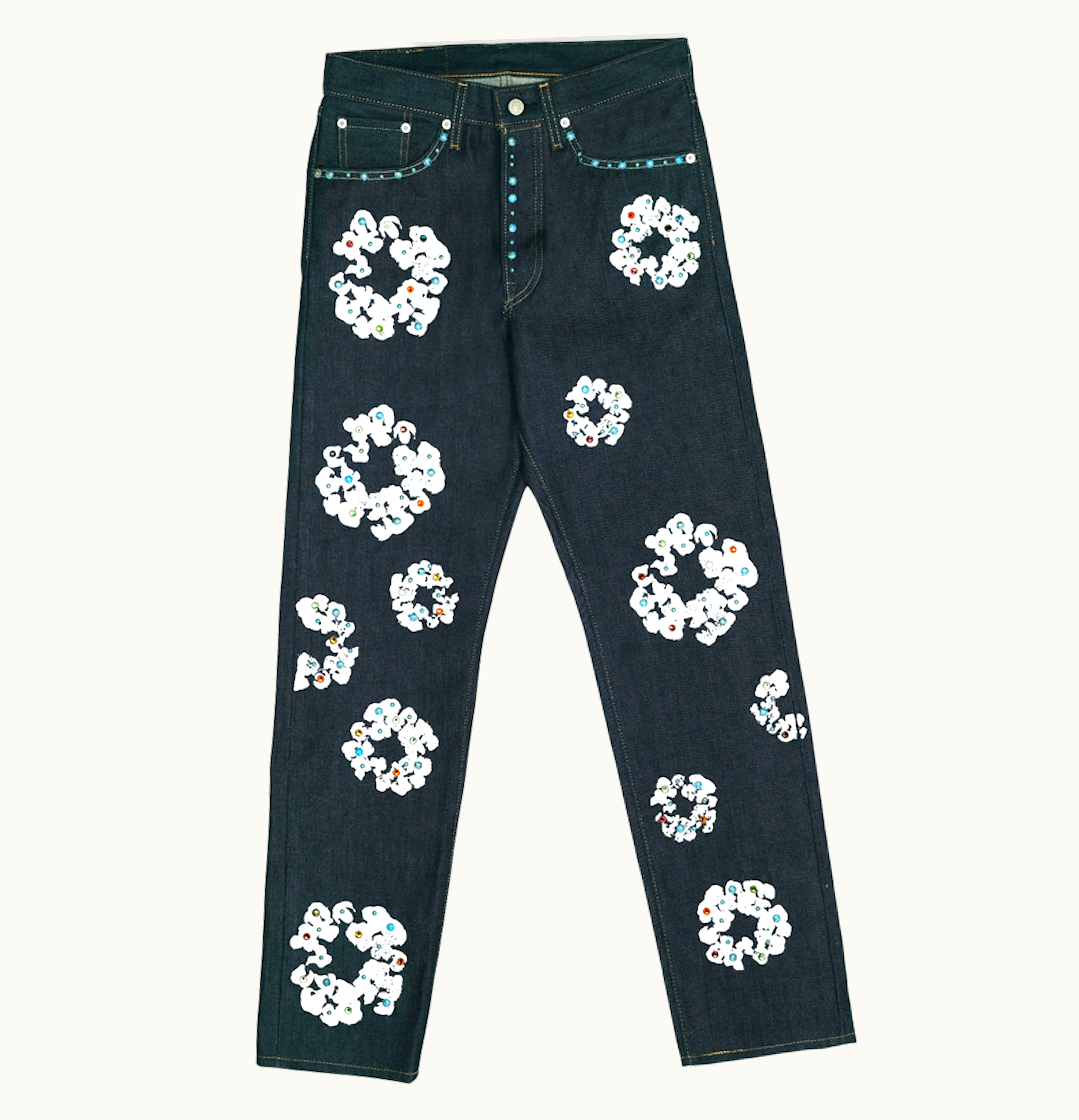 Denim Tears x Levis 501 Cotton Rhinestone Wreath Jeans Raw | GLINT