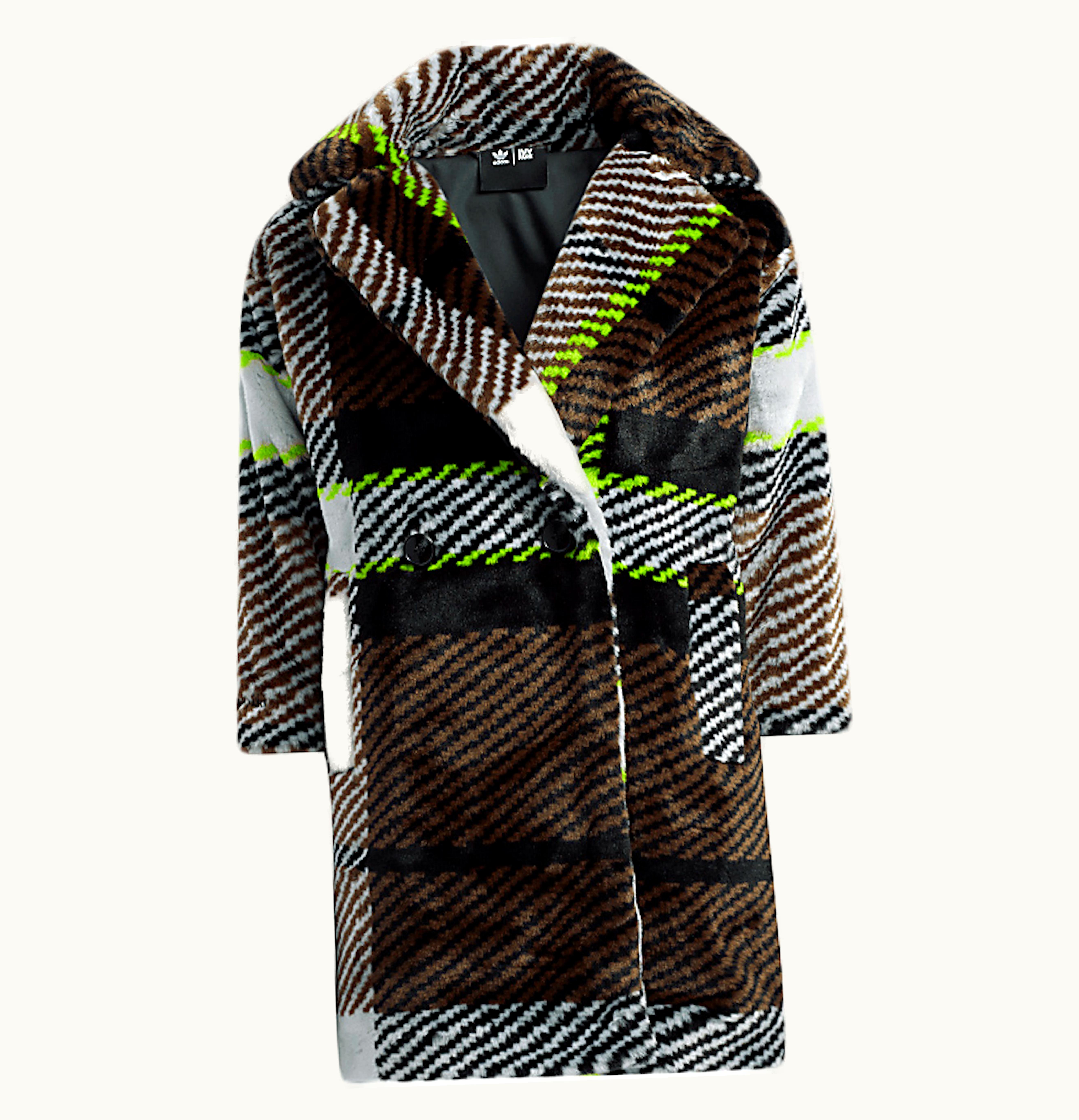 adidas Ivy Park Halls of Ivy Kids Long Printed Faux Fur Jacket Clear Grey Brown Black Semi Solar Slime | GLINT