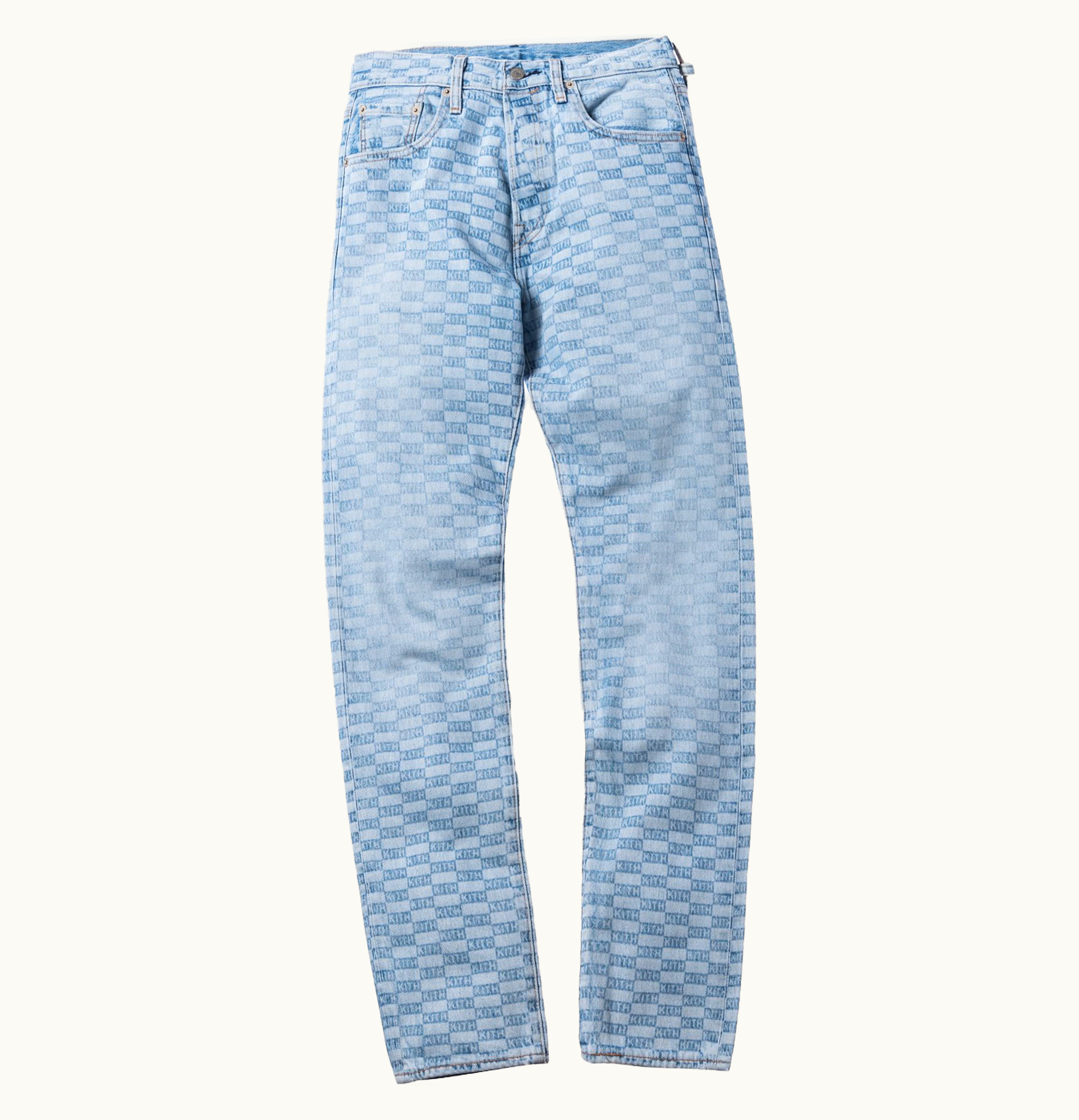 Kith x Levis Salt Bleached AOP 501 Jeans Light Blue | GLINT