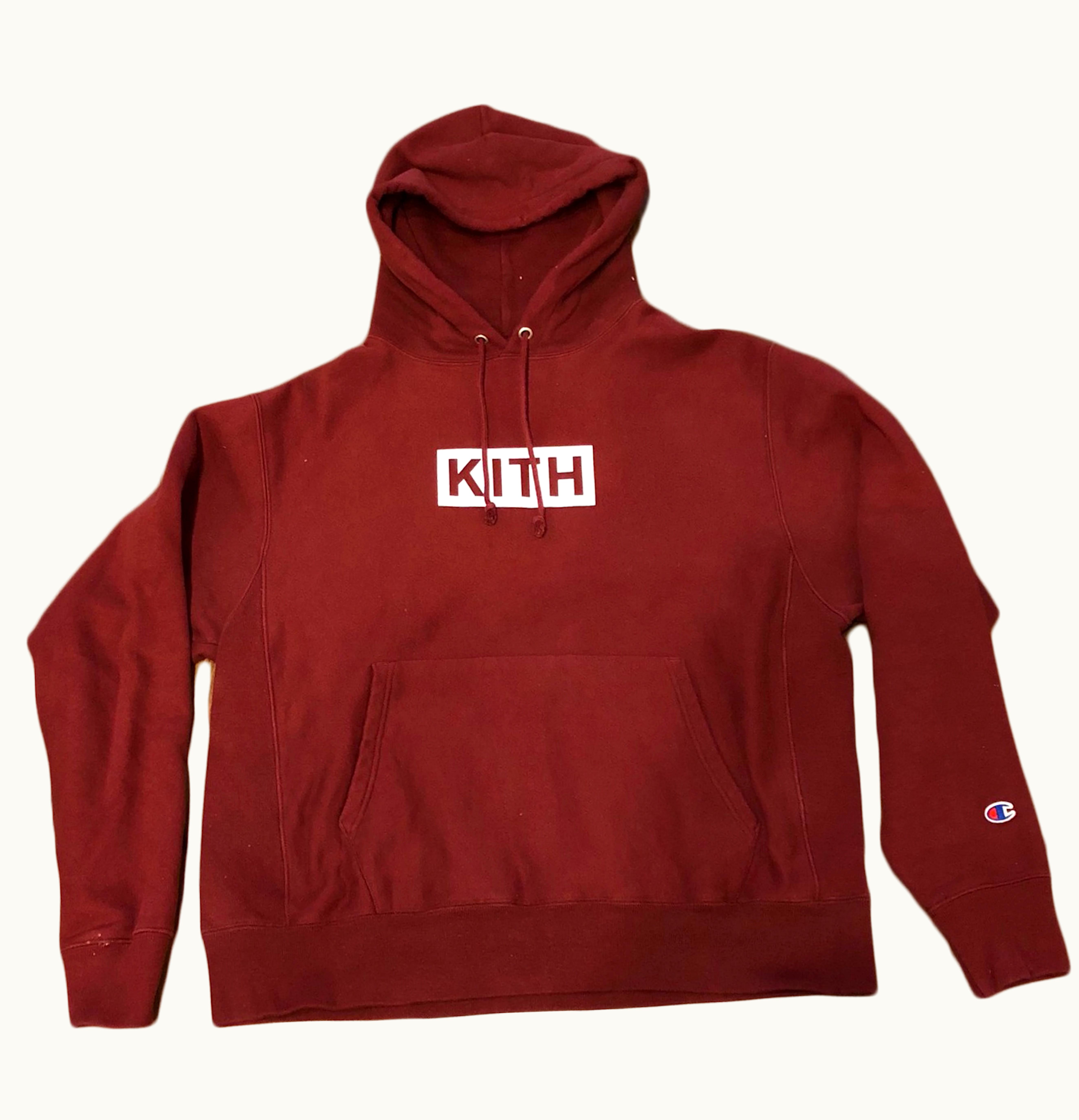 Kith x Champion Box Logo Hoodie Red | GLINT