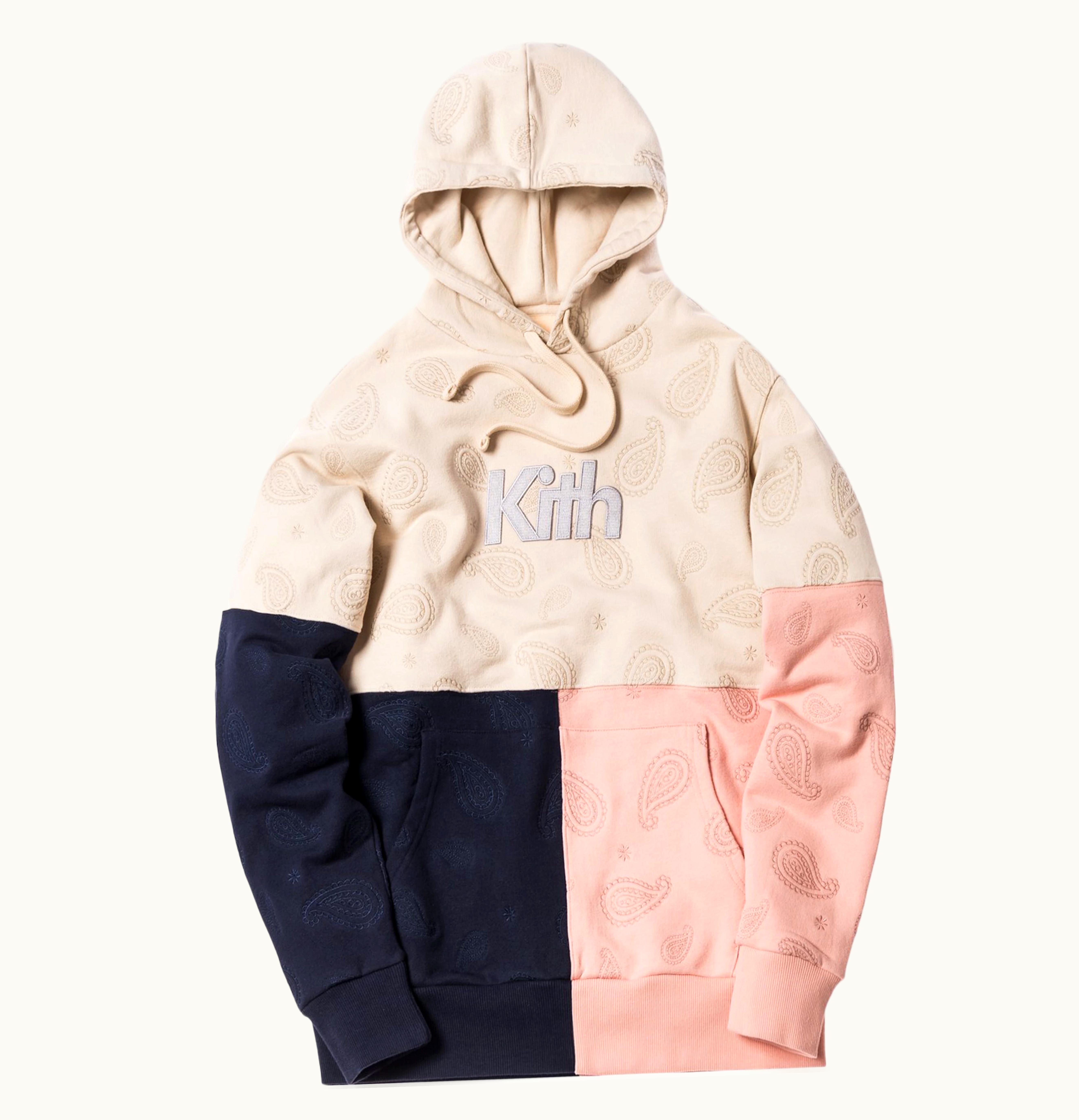 Kith Paisley Tri Block Hoodie Ivory Navy Coral | GLINT