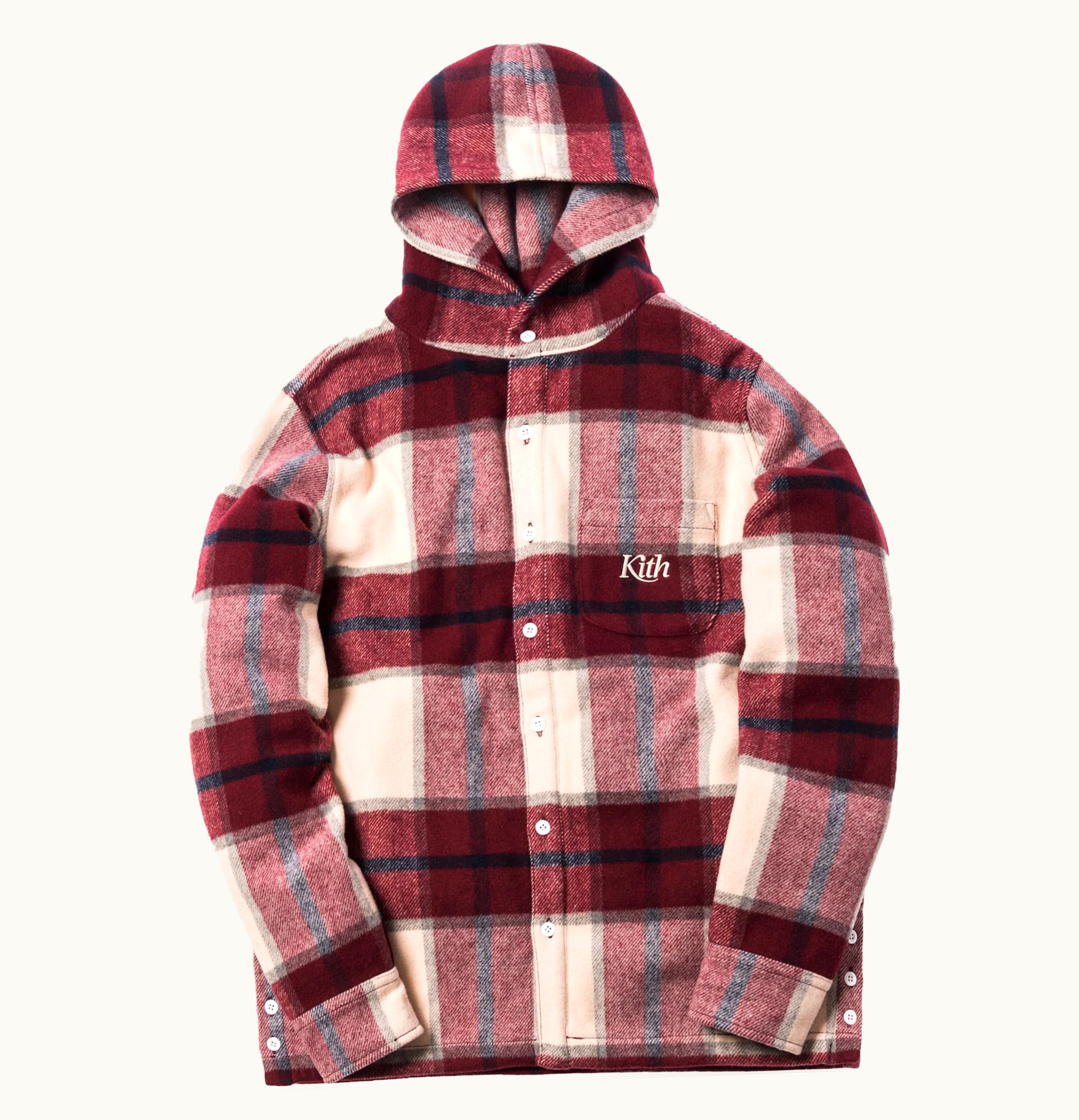 Kith Plaid Hooded Ginza Shirt Burgundy Plaid | GLINT