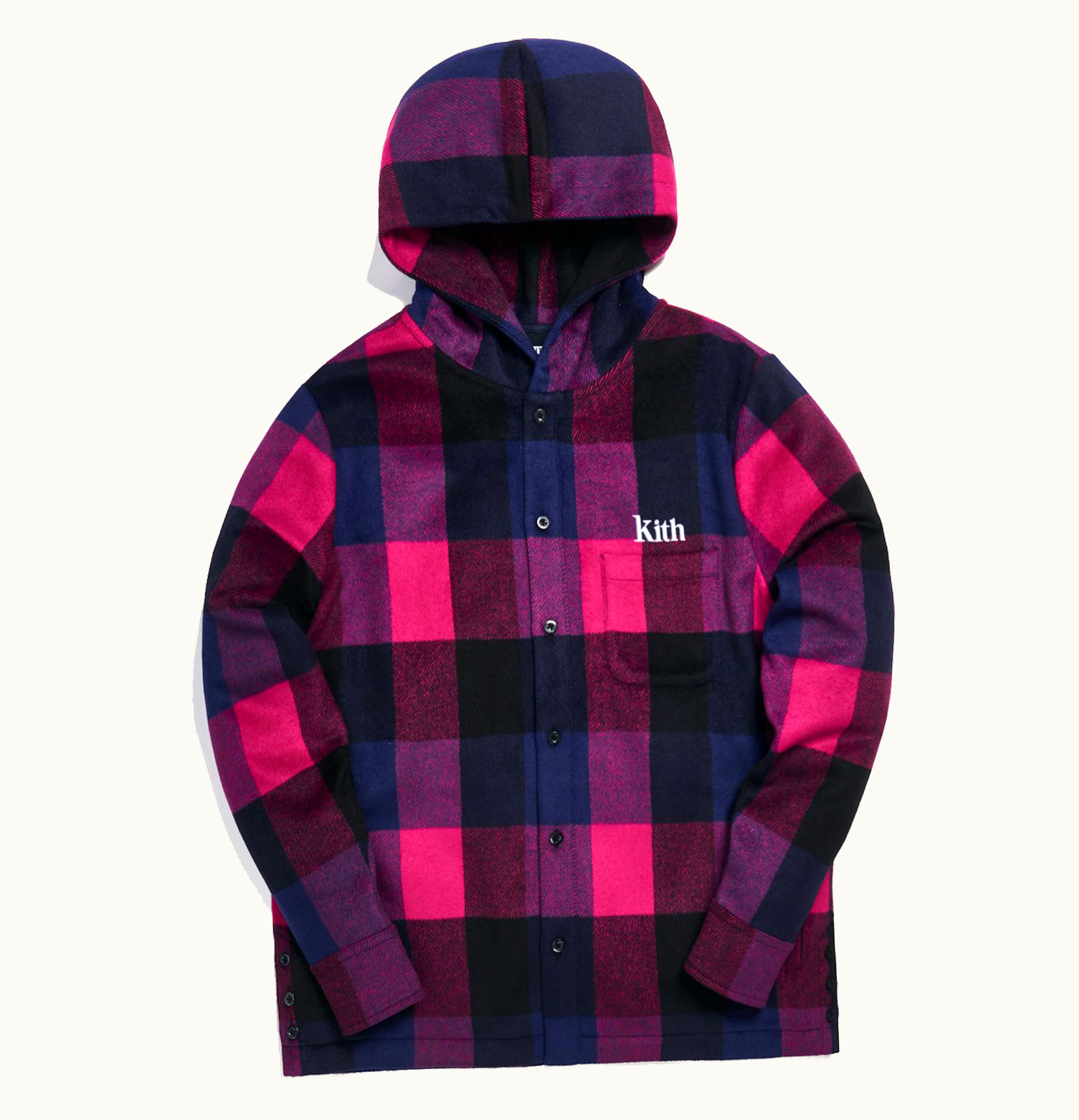 Kith Plaid Wool Ginza Hooded Shirt Pink | GLINT