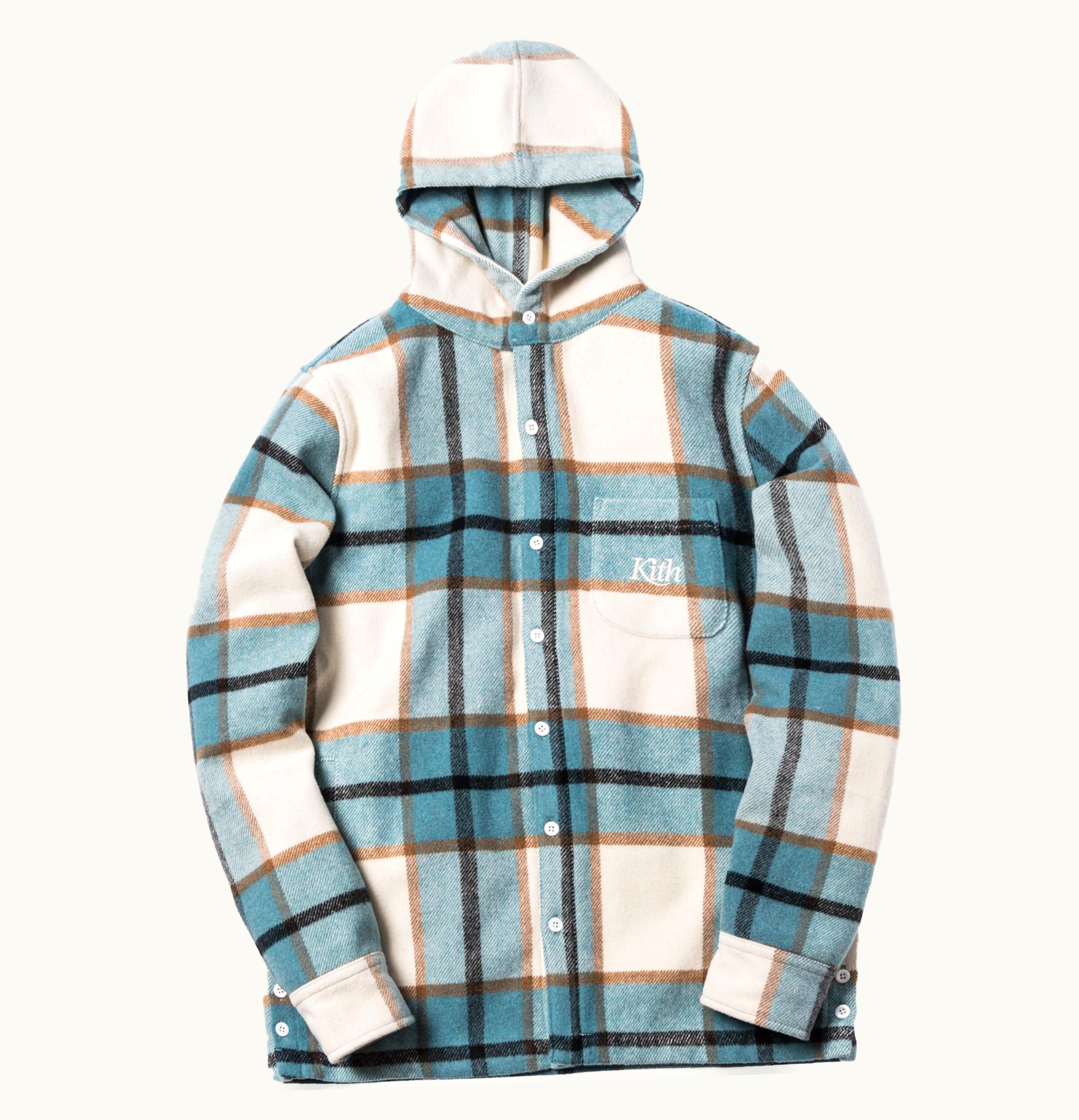 Kith Plaid Hooded Ginza Shirt Light Blue Plaid | GLINT