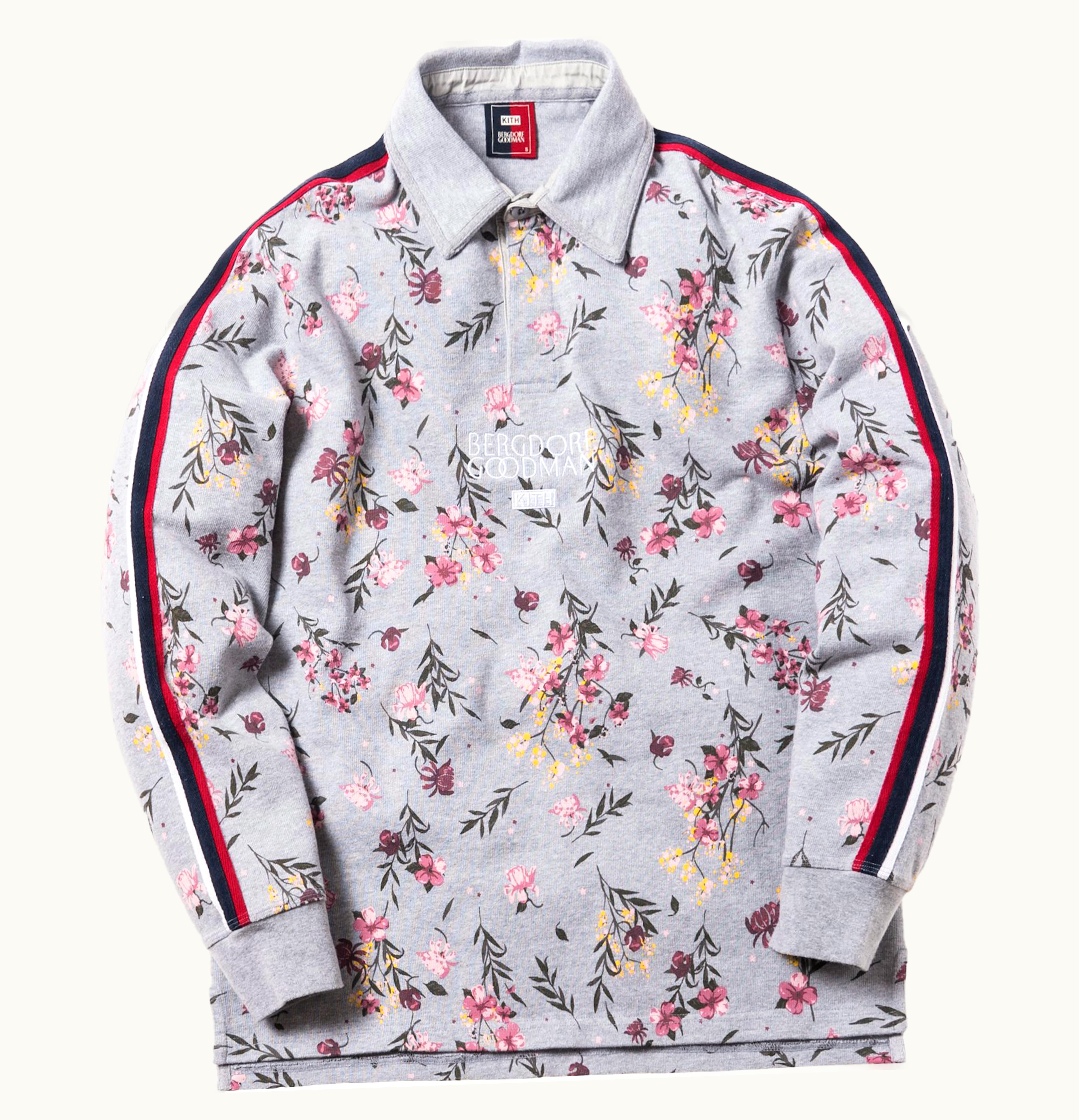 Kith x Bergdorf Goodman Floral Rugby Shirt Heather Grey | GLINT