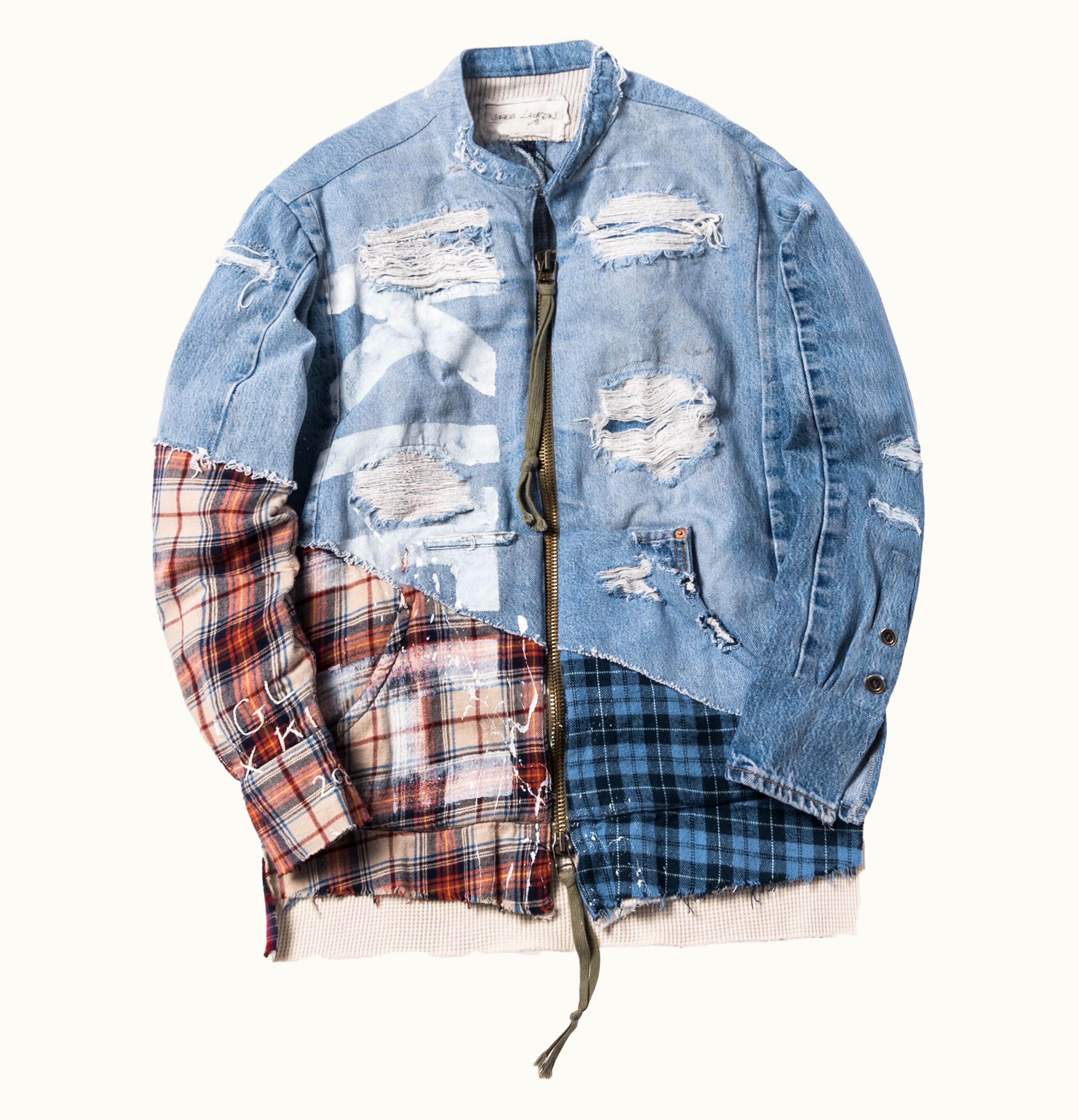 Kith x Greg Lauren Vintage Denim Mixed Plaid Zip Front Studio Shirt Multi Denim | GLINT