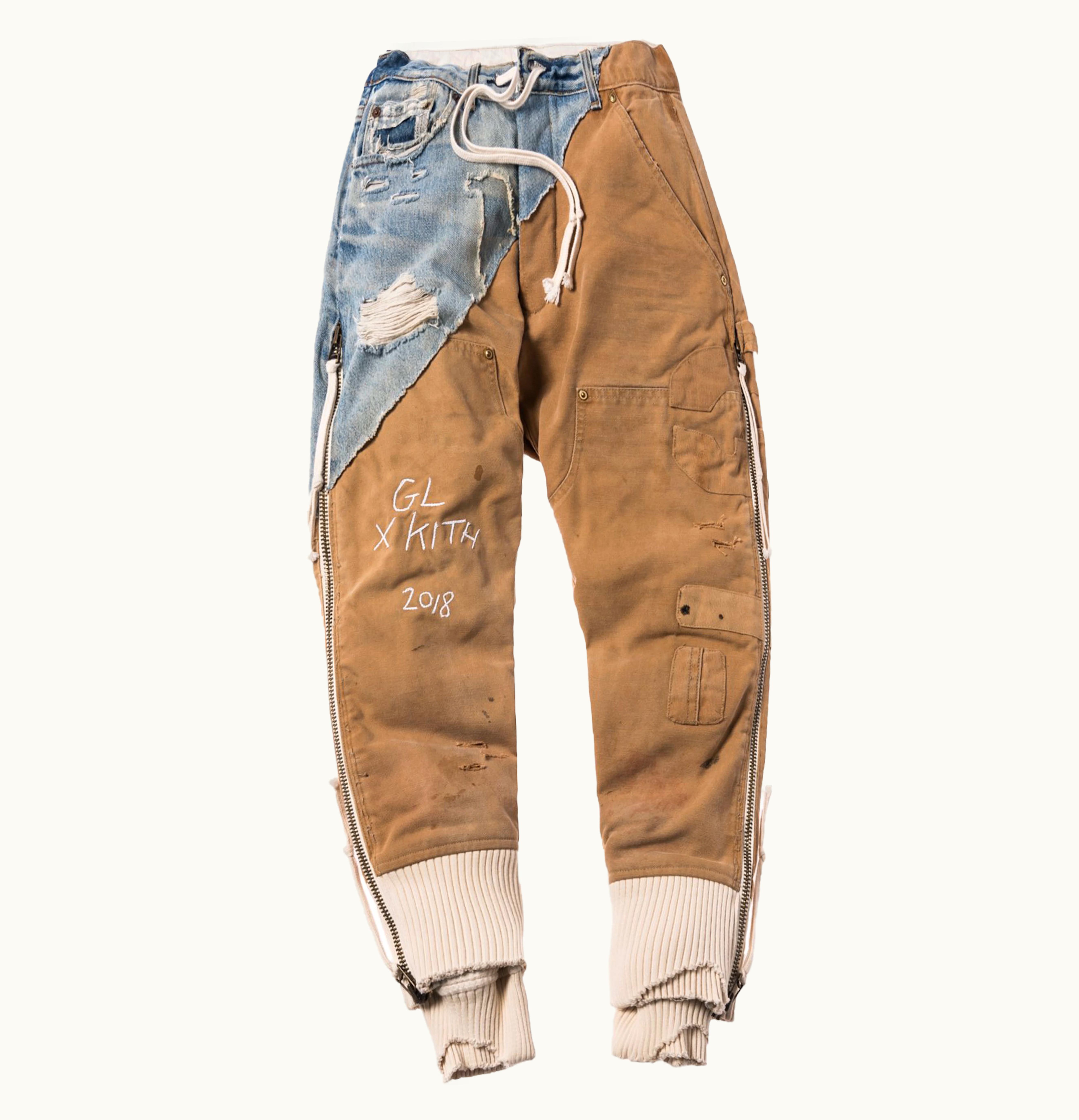 Kith x Greg Lauren Vintage Denim Canvas Carhartt Heavy Waffle Pant Denim Tan | GLINT