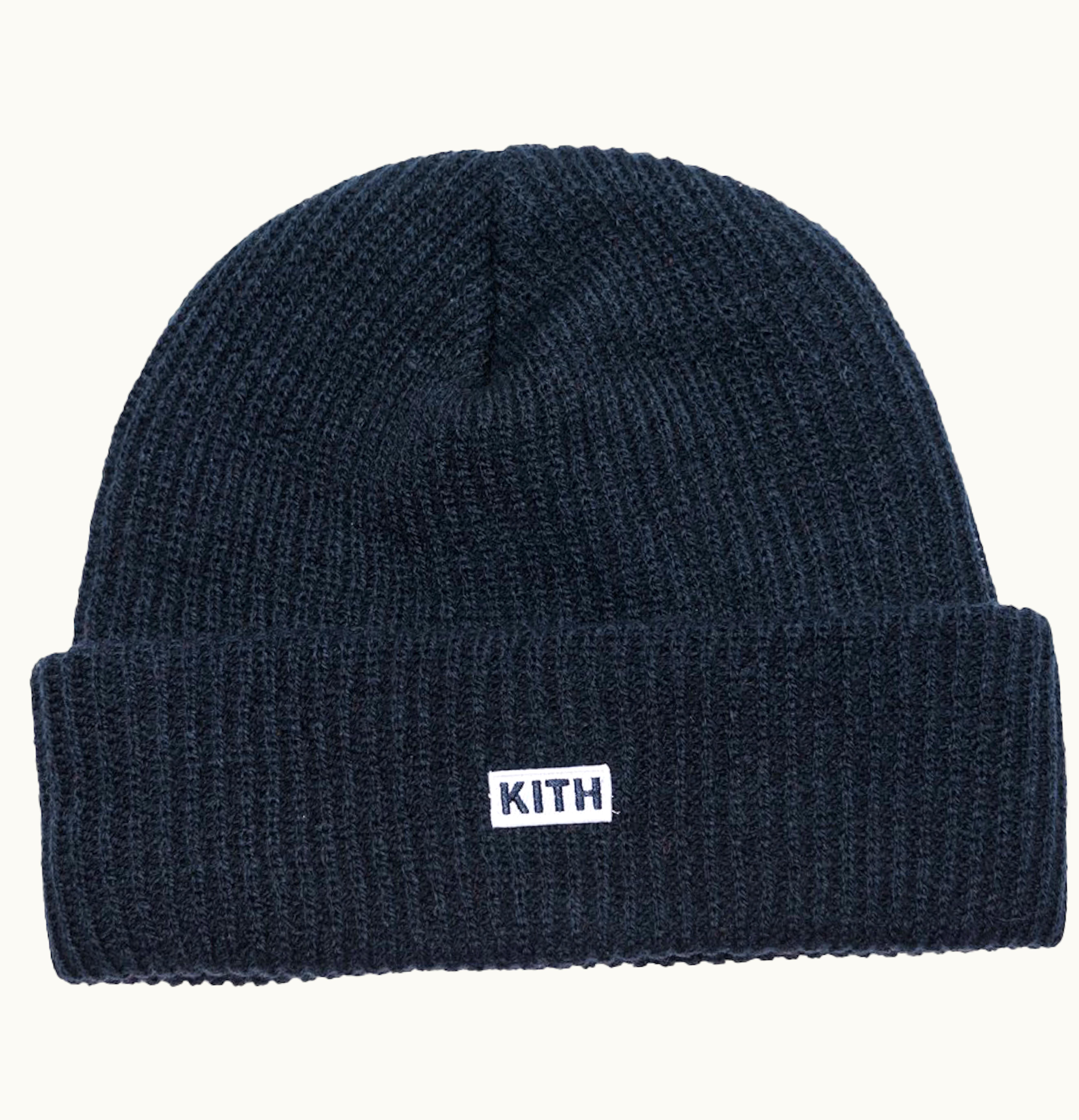 Kith Classic Logo Knit Beanie Navy | GLINT