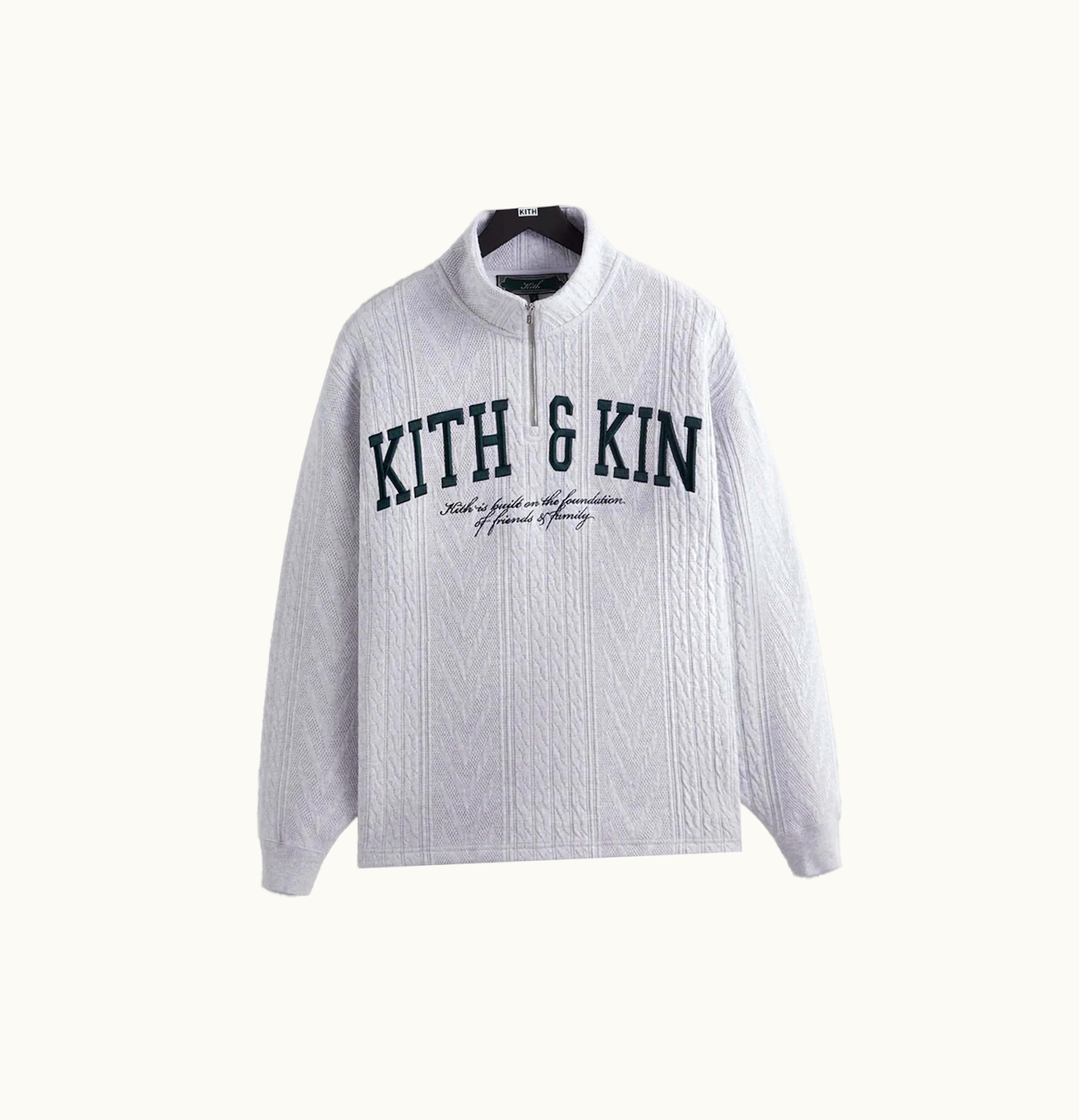 Kith Cable Fleece Quarter Zip Light Heather Grey | GLINT