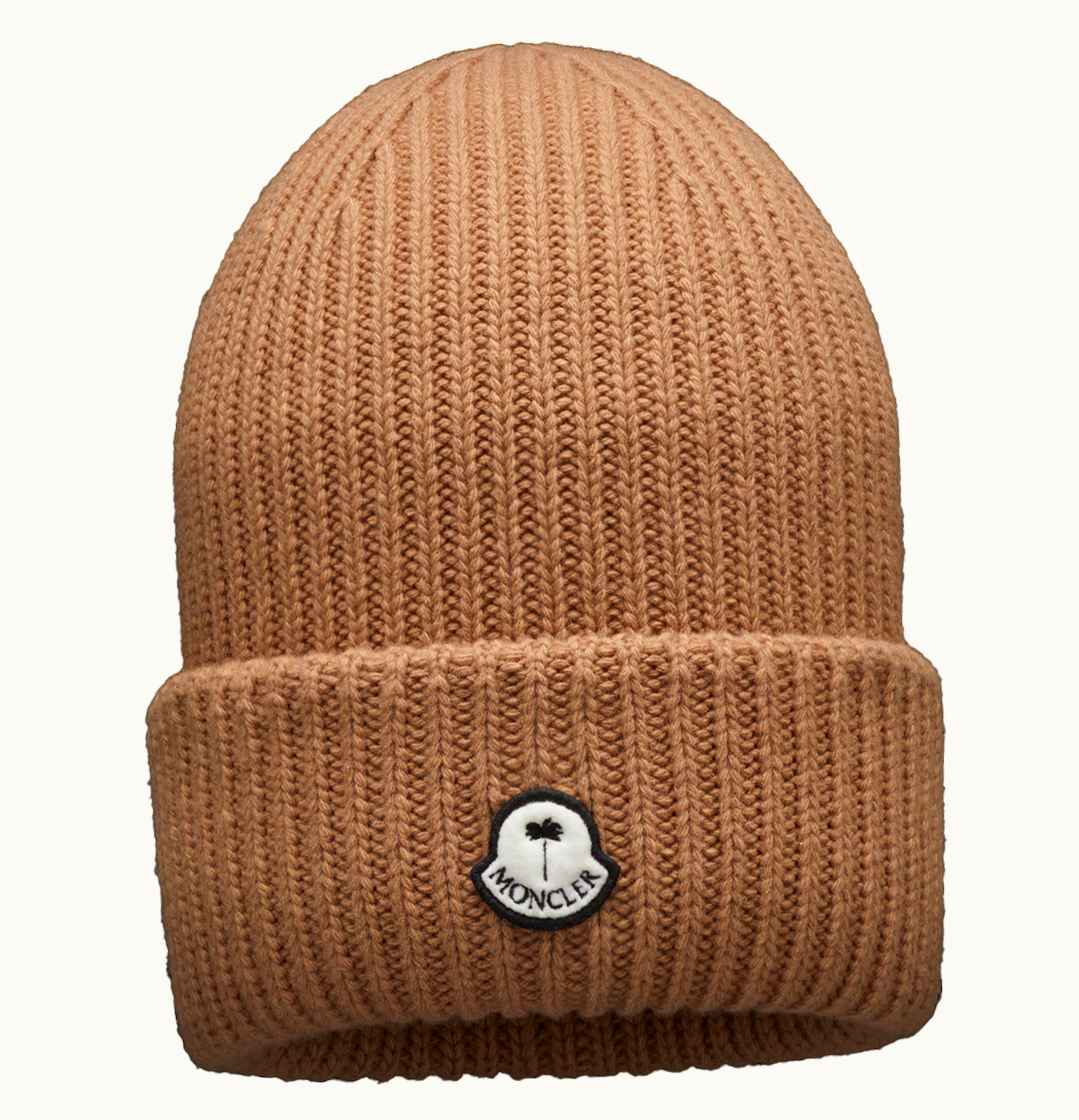 The Moncler x Palm Angels Patched Ribbed beanie is a stylish winter accessory designed for both men and women. The beanie features a classic ribbed knit construction, which provides a comfortable and snug fit. It is crafted from a soft and warm wool blend, making it perfect for cold weather. The beanie also features a unique patch design, created in collaboration with Palm Angels. The patch is located on the front of the beanie and features a bold Palm Angels logo in white, set against a black background. This adds a touch of cool and edgy style to the classic design of the beanie. Overall, the Moncler x Palm Angels Patched Ribbed beanie is a must-have accessory for any fashion-conscious winter wardrobe. It is perfect for keeping your head warm and stylish during the colder months, whether you're out running errands or hitting the slopes.