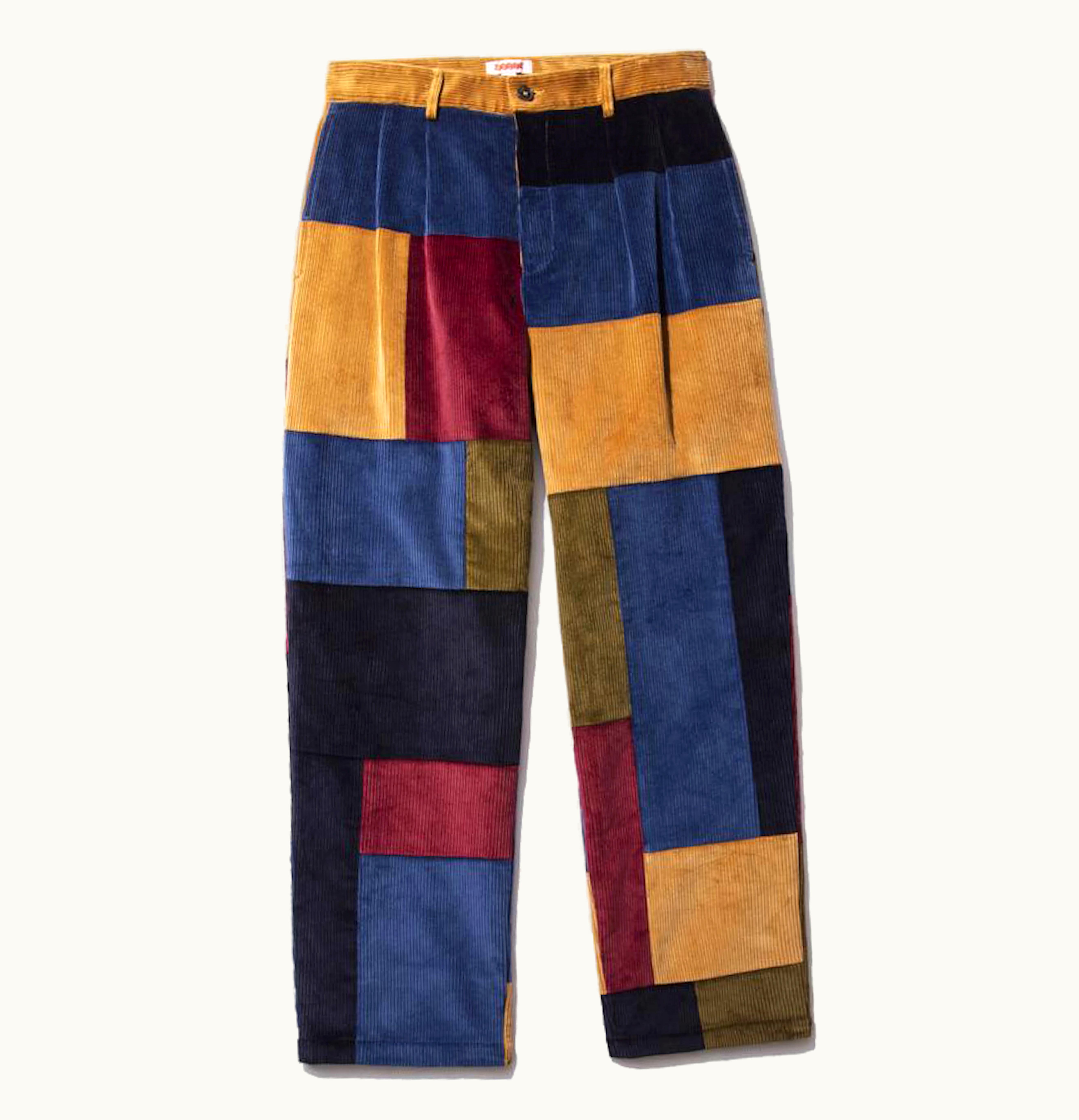 Noah x Baracuta Double Pleat Patchwork Corduroy Trousers Navy Multi | GLINT
