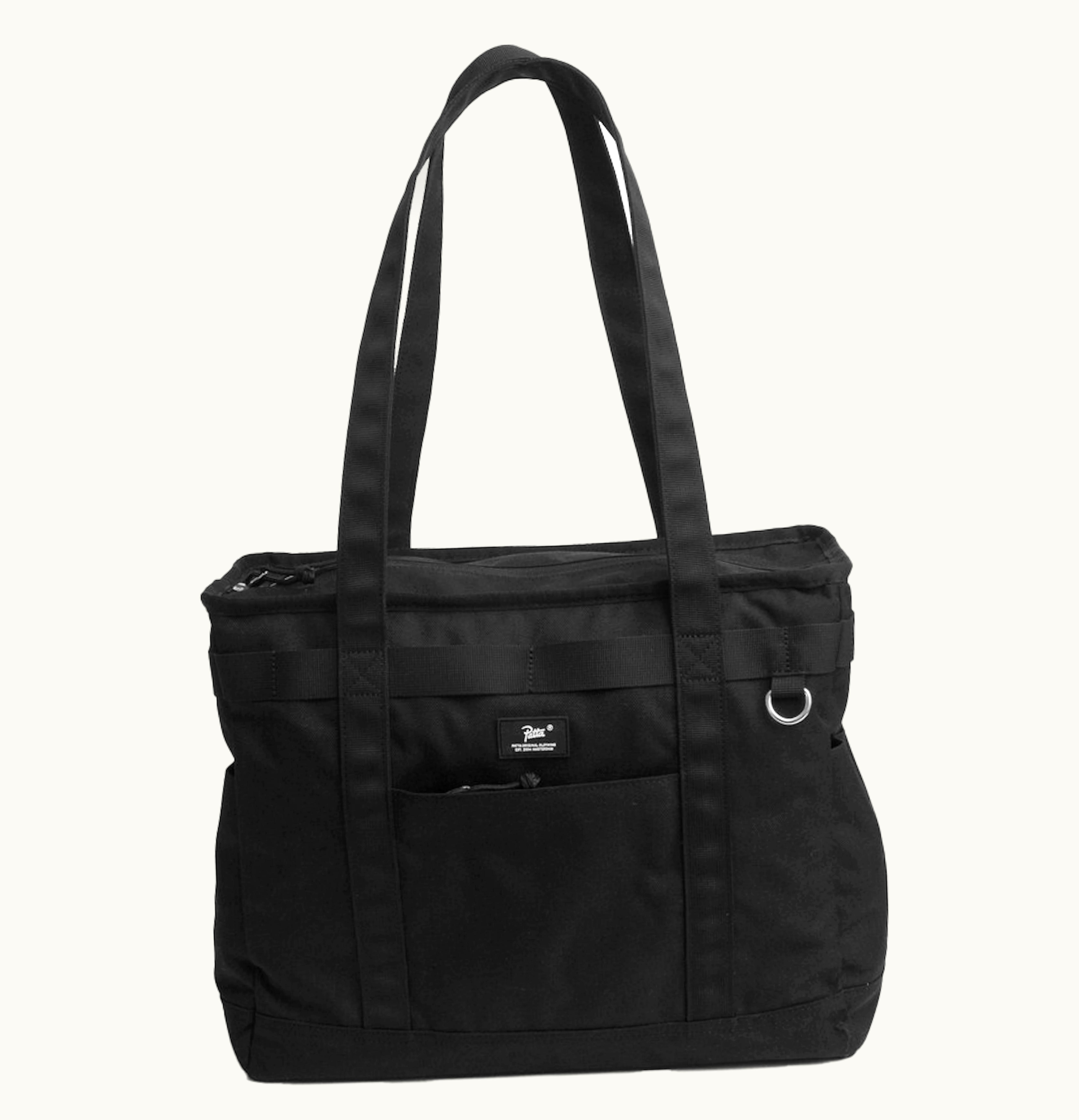 The Patta Technical Tote is an urban-inspired, multi-functional bag that is designed to accommodate your daily carry essentials with ease. Crafted from durable and water-resistant nylon, it features a spacious main compartment with a zip-top closure, multiple pockets of different sizes, and an internal pocket for secure storage of smaller items. The front of the tote features a sleek Patta patch logo that adds a touch of style to its simple and minimalist design. Moreover, its shoulder straps are adjustable and reinforced with additional padding for comfortable and convenient wear. Whether you're headed to school, work or your next weekend adventure, the Patta Technical Tote has got you covered with its practicality, durability and understated aesthetic appeal.