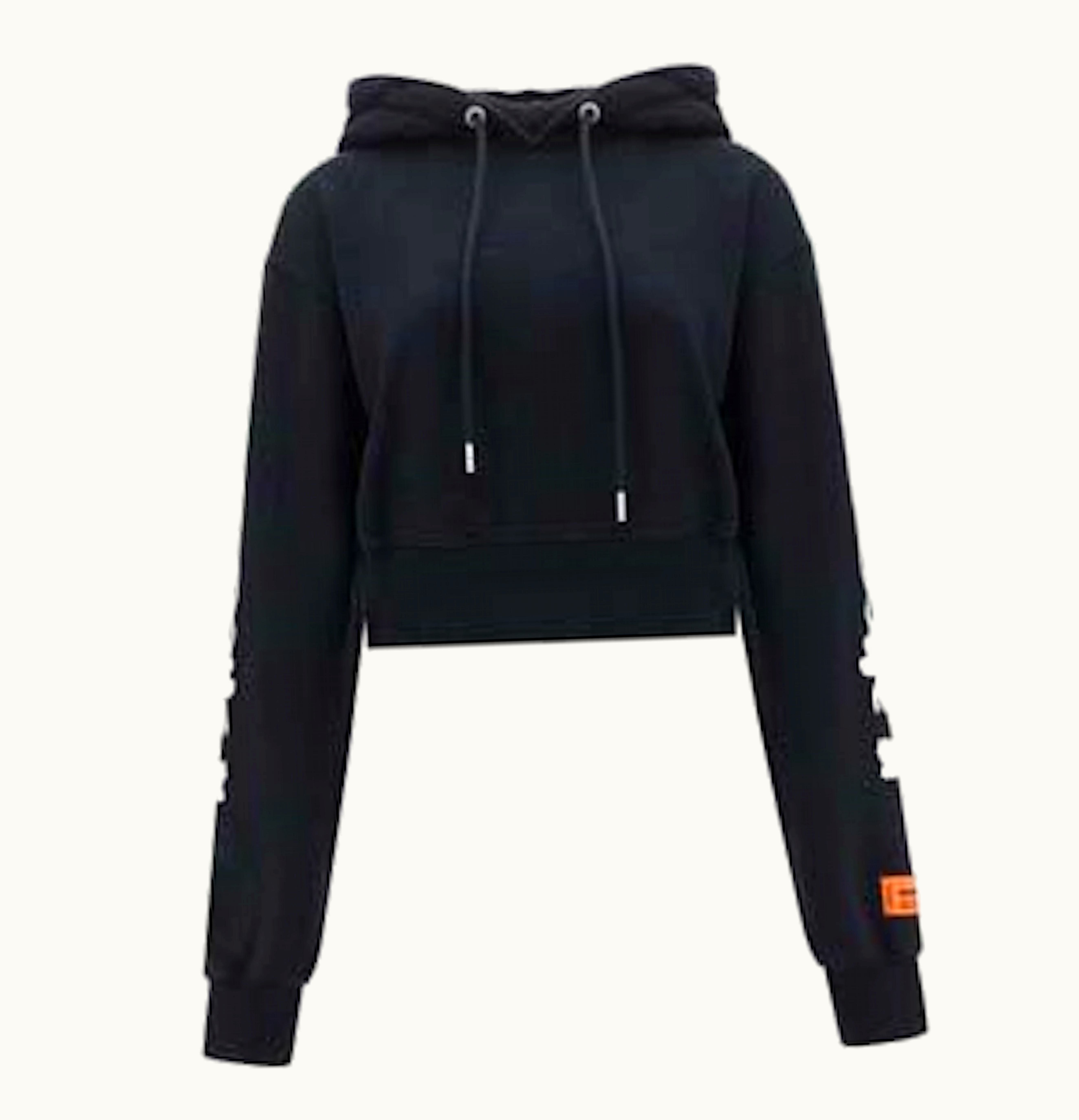 Heron Preston Flaming Skull Crop Hoodie Black White | GLINT