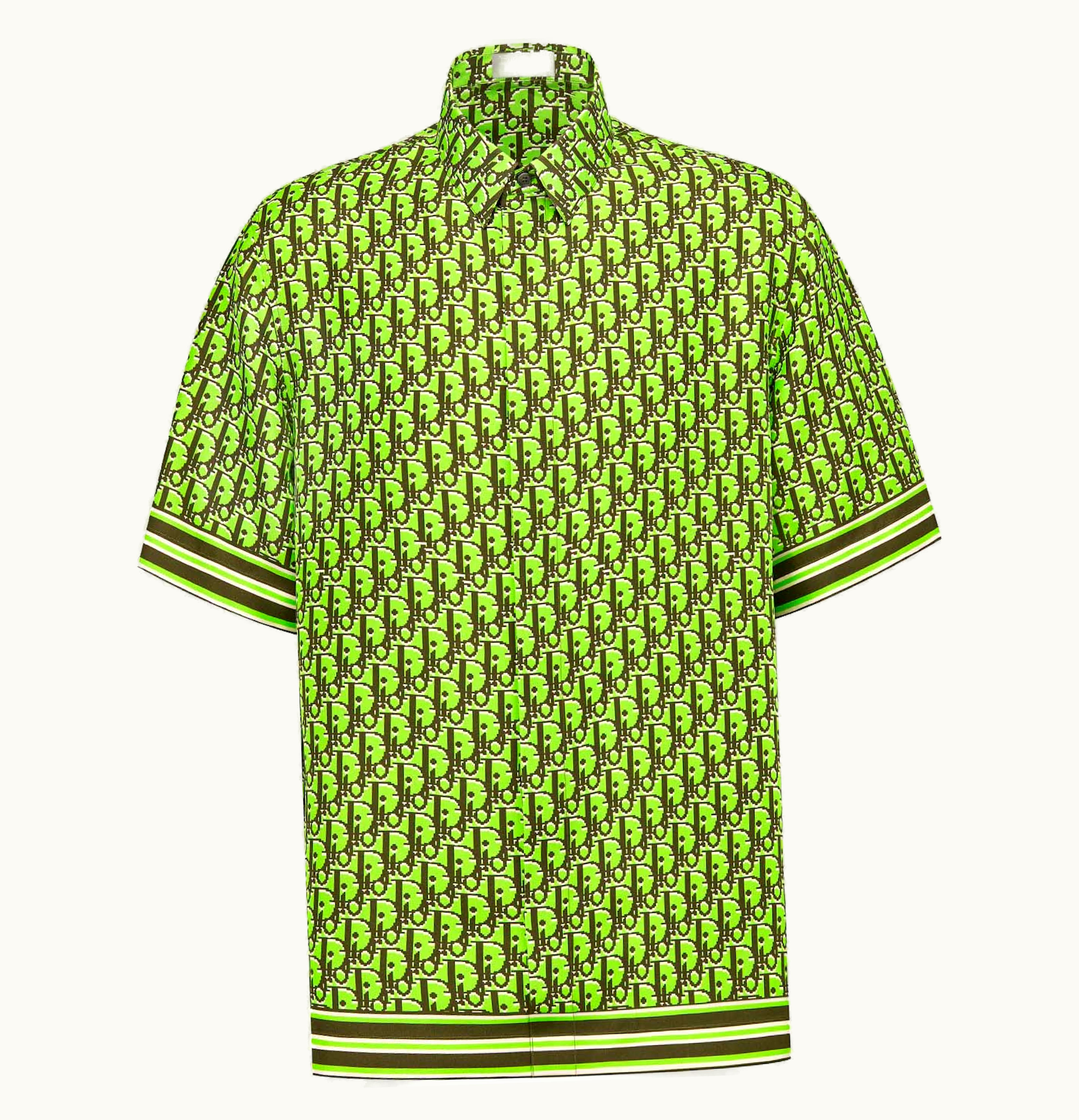 Dior Oblique Pixel Short Sleeved Shirt Fluorescent Green Khaki | GLINT
