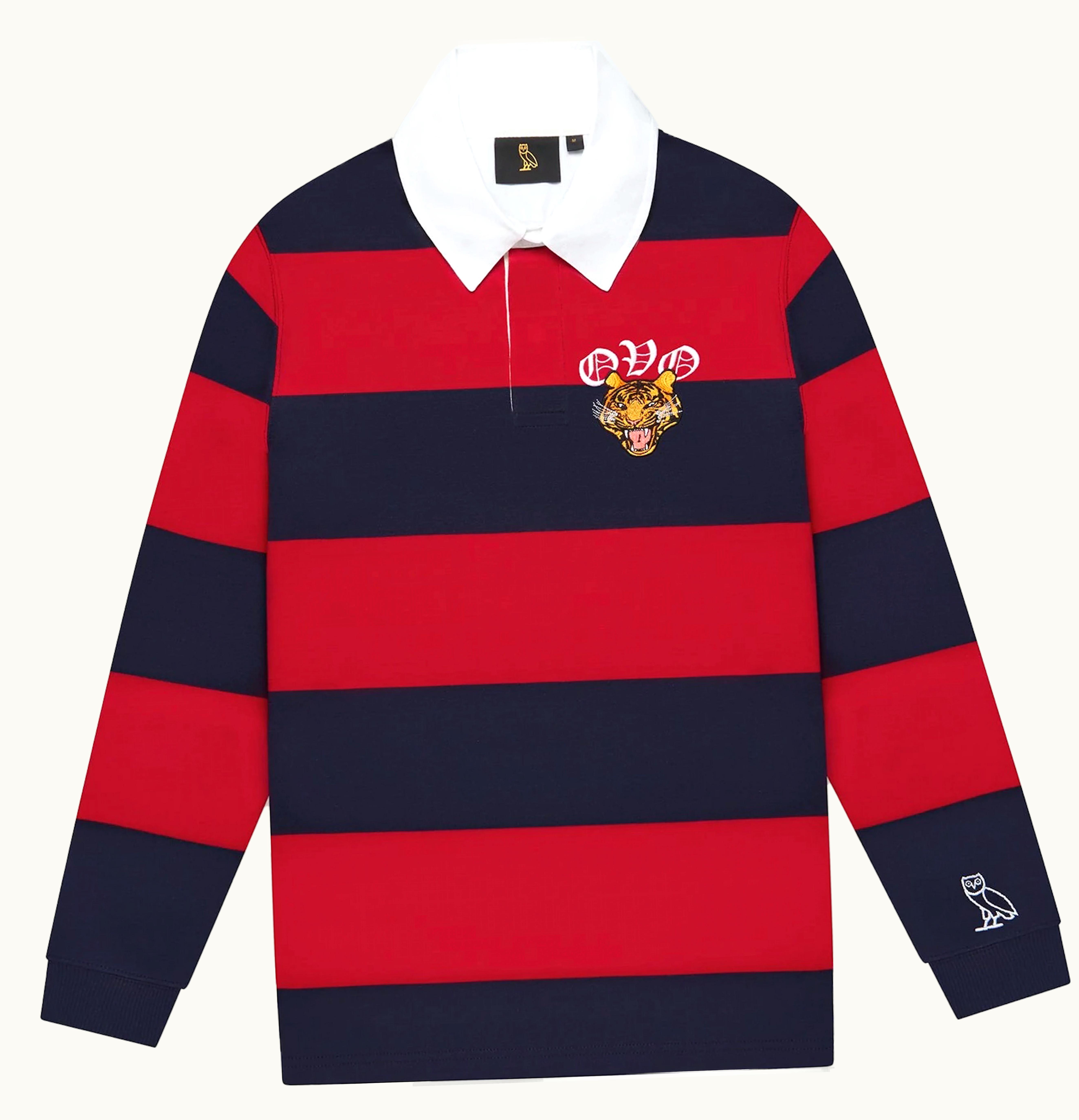 OVO Striped Tiger Rugby Shirt Red Navy | GLINT