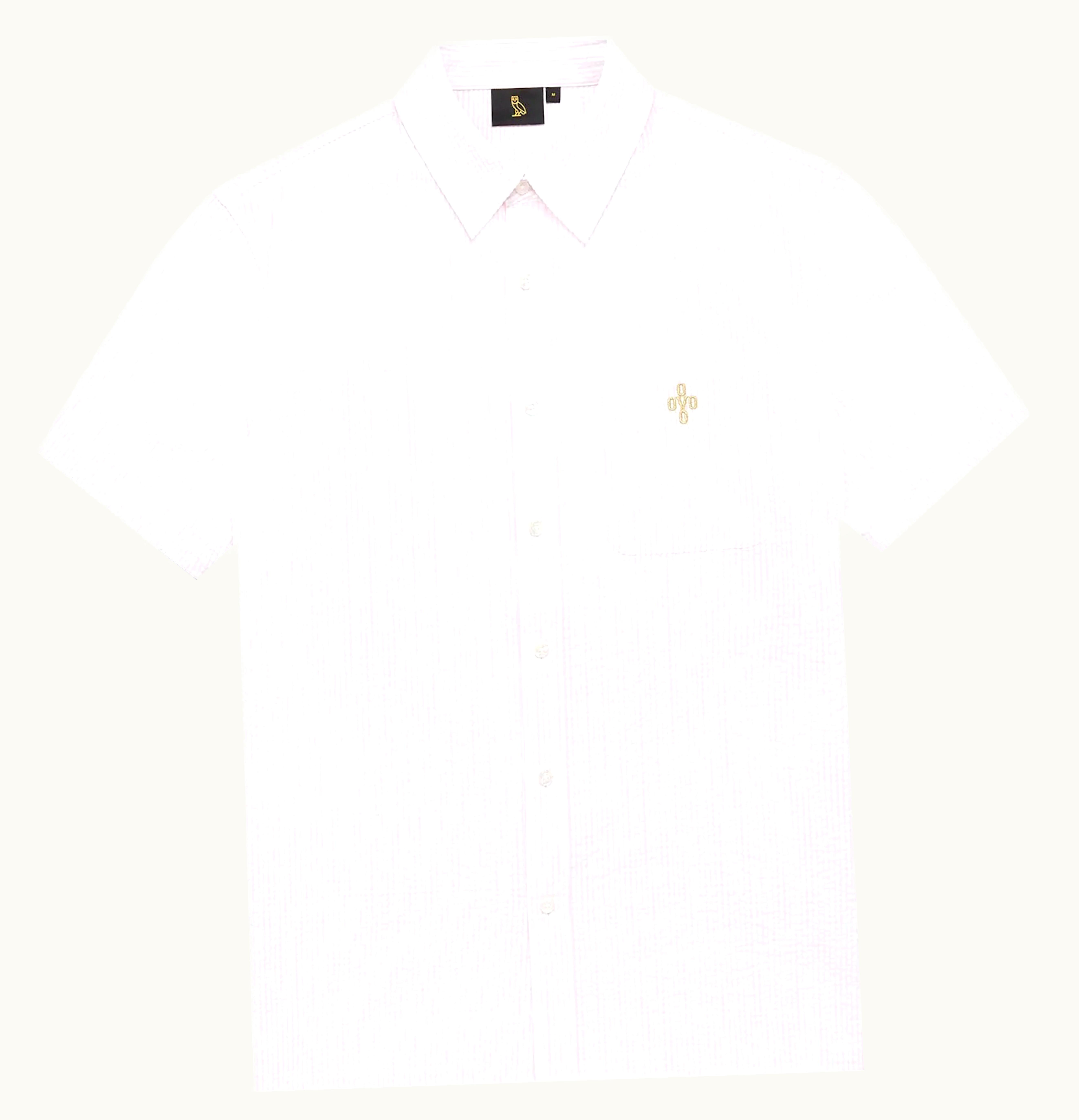 OVO Short Sleeve Seersucker Button Up Shirt Pale Pink White | GLINT