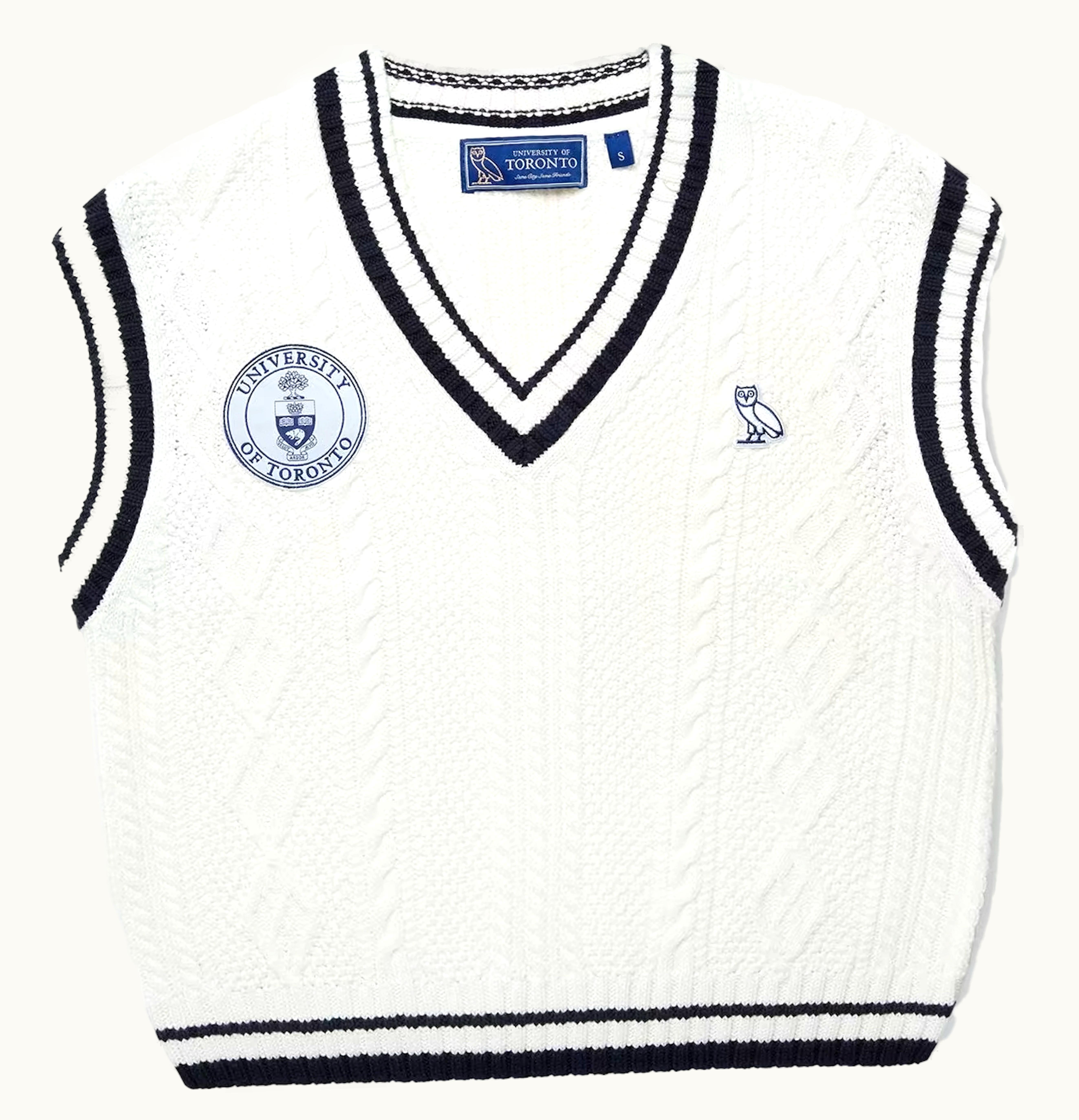 OVO U Of T Womens Cable Knit Sweater Vest Cream | GLINT