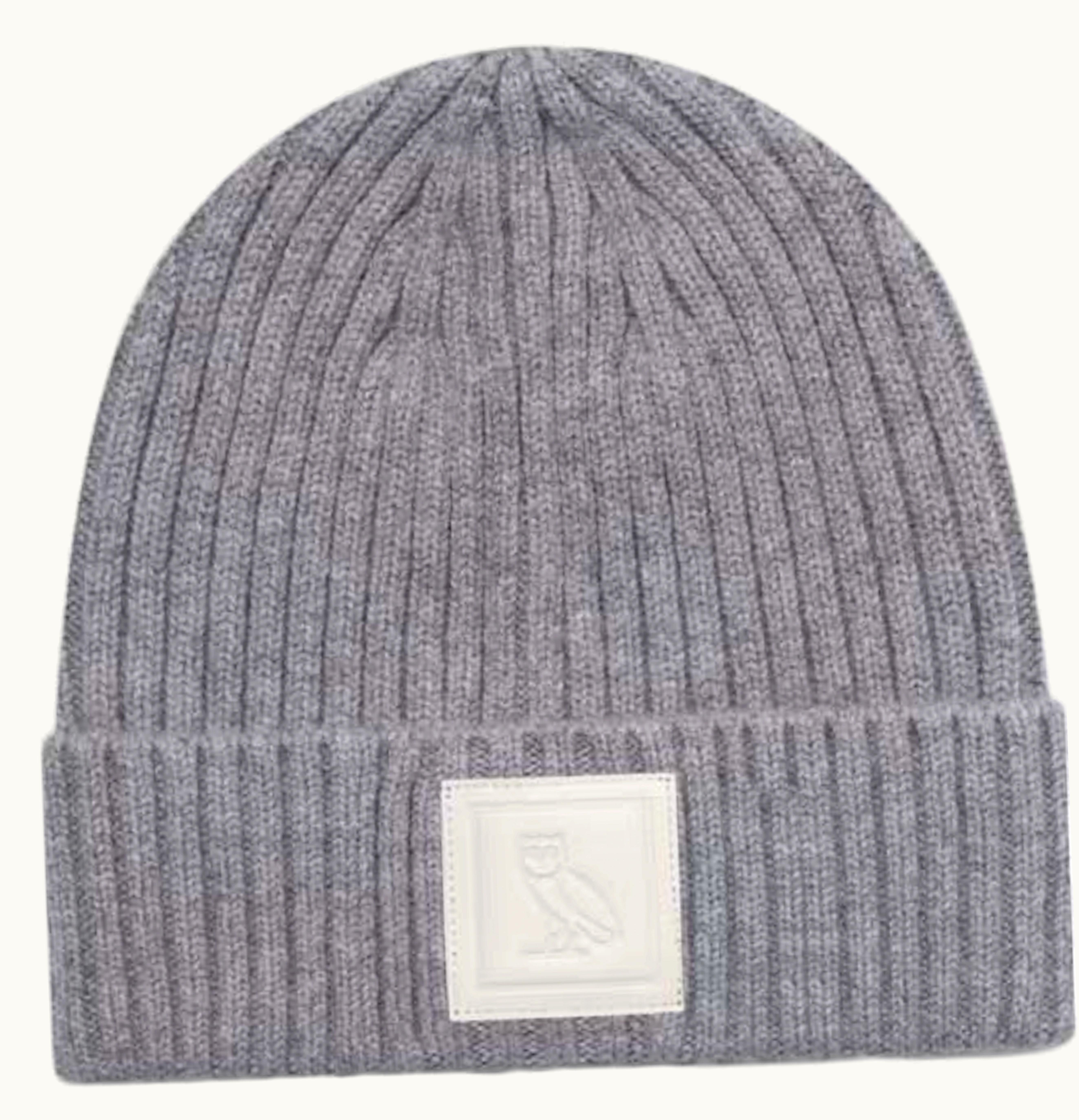 OVO Leather Patch Beanie Heather Grey | GLINT