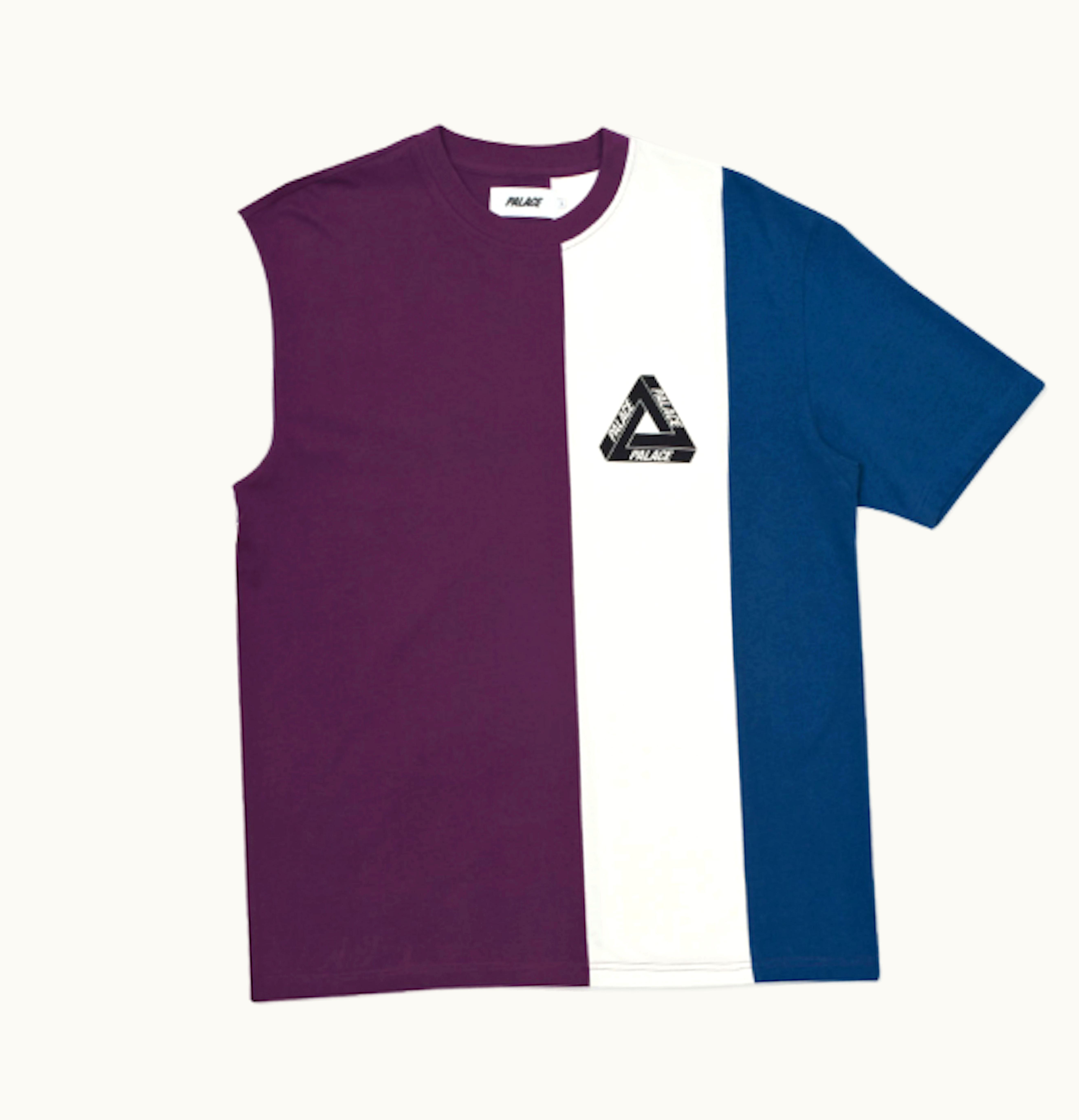 Palace Vertical Tri Stripe T Shirt Purple White Teal | GLINT