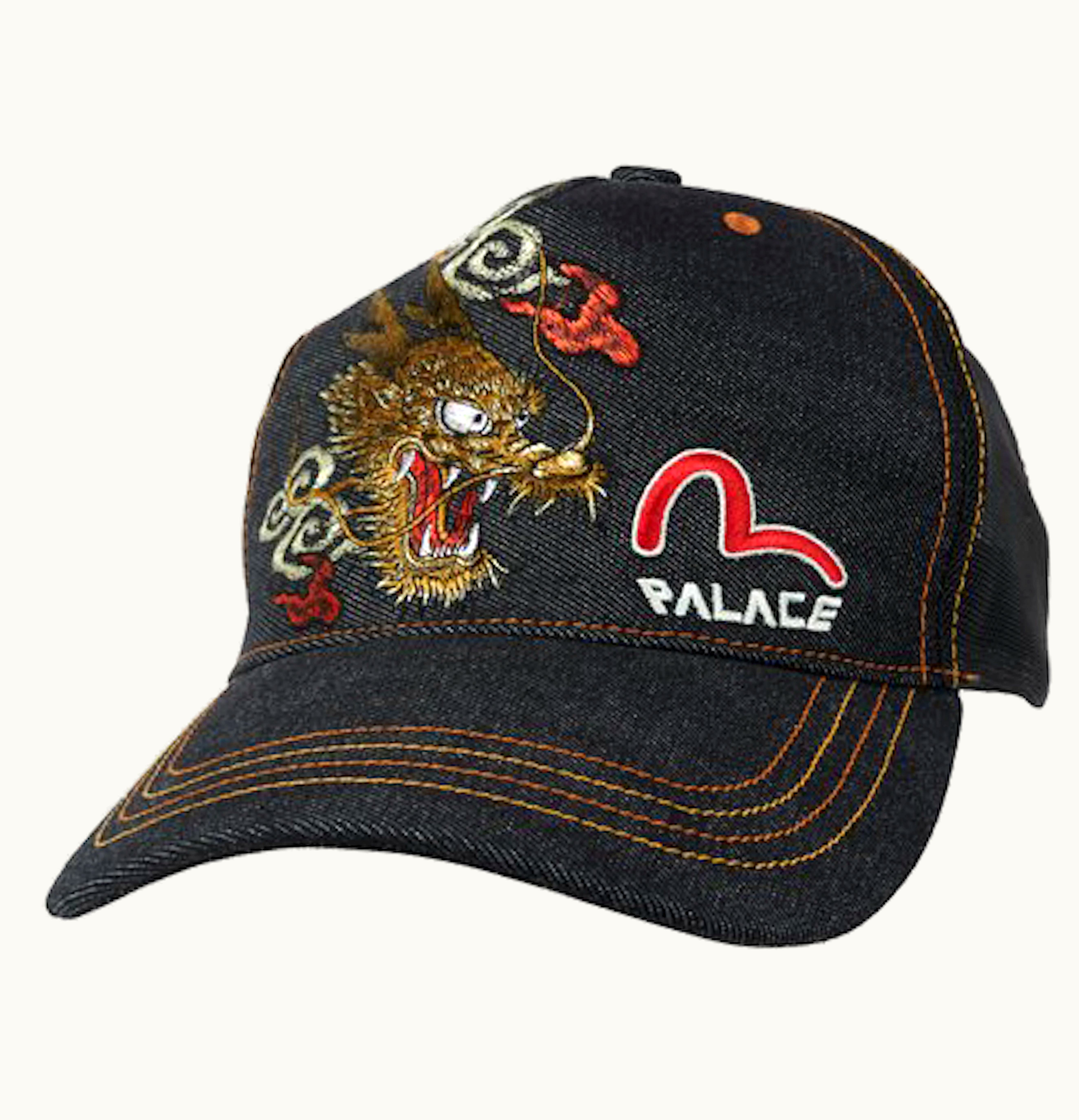 Palace x Evisu Denim Trucker Hat Indigo Raw | GLINT