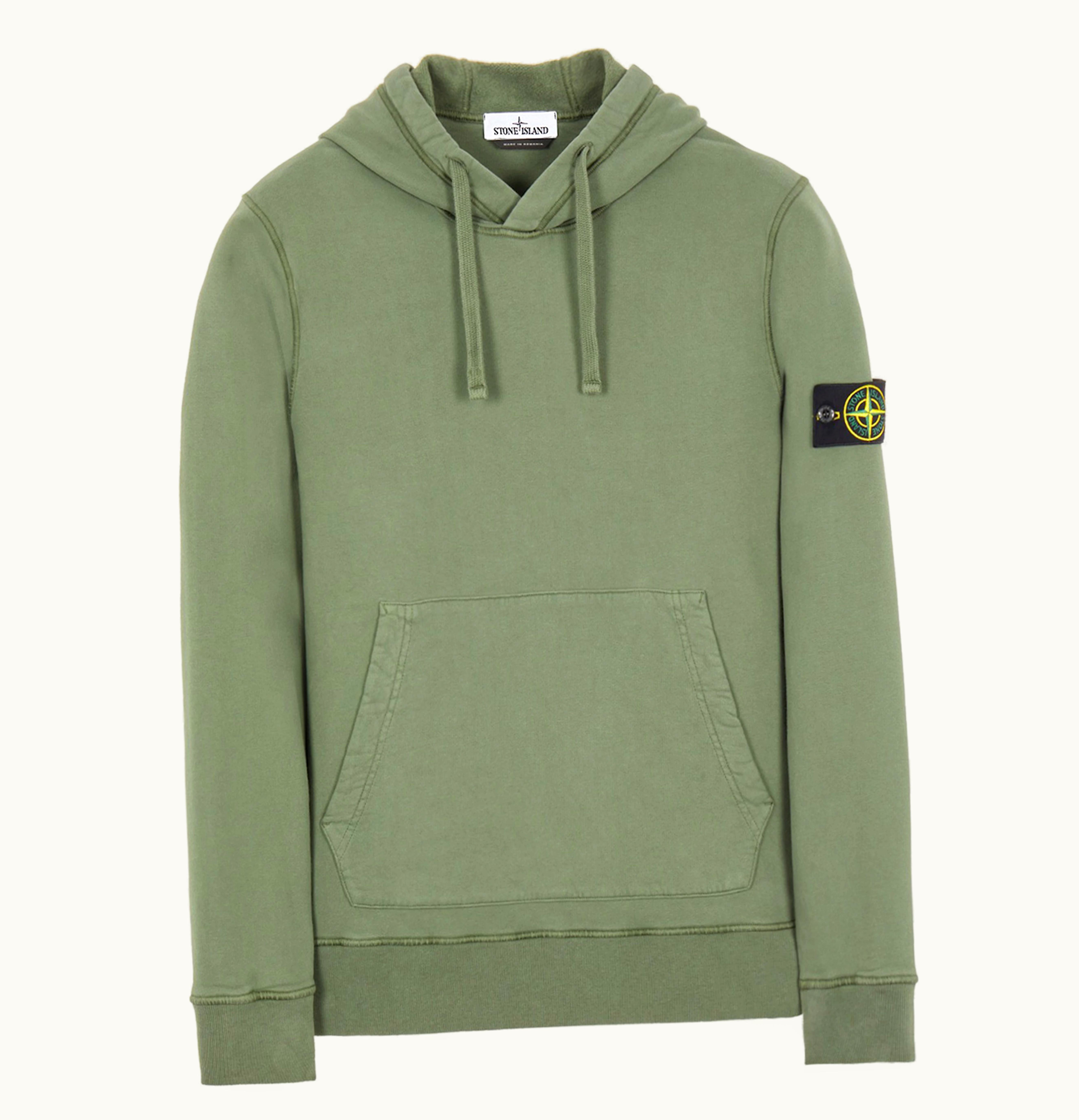 Stone Island 64120 Brushed Cotton Fleece Hoodie Sage | GLINT