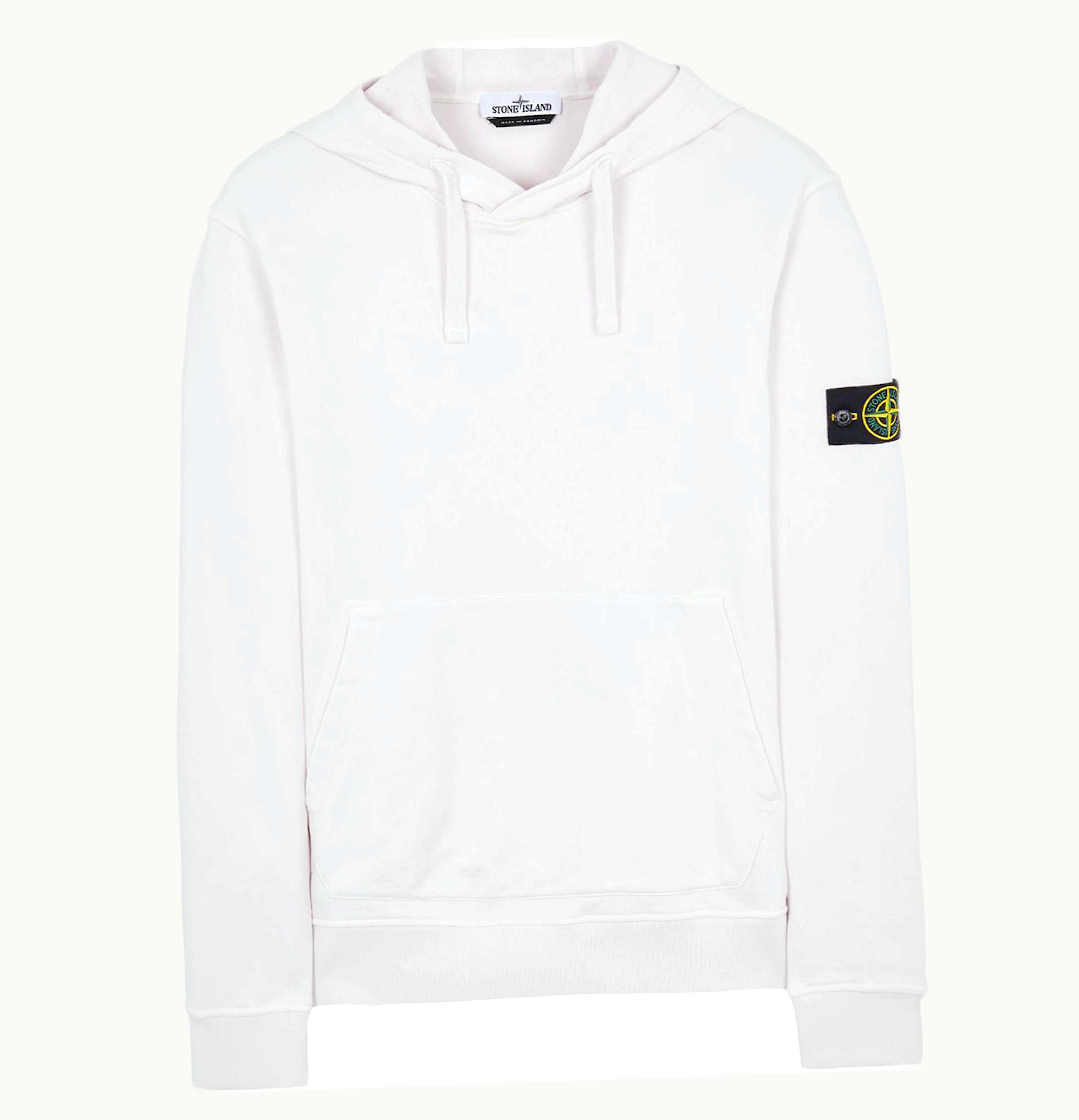 Stone Island Garment Dyed Cotton Fleece Hoodie White | GLINT