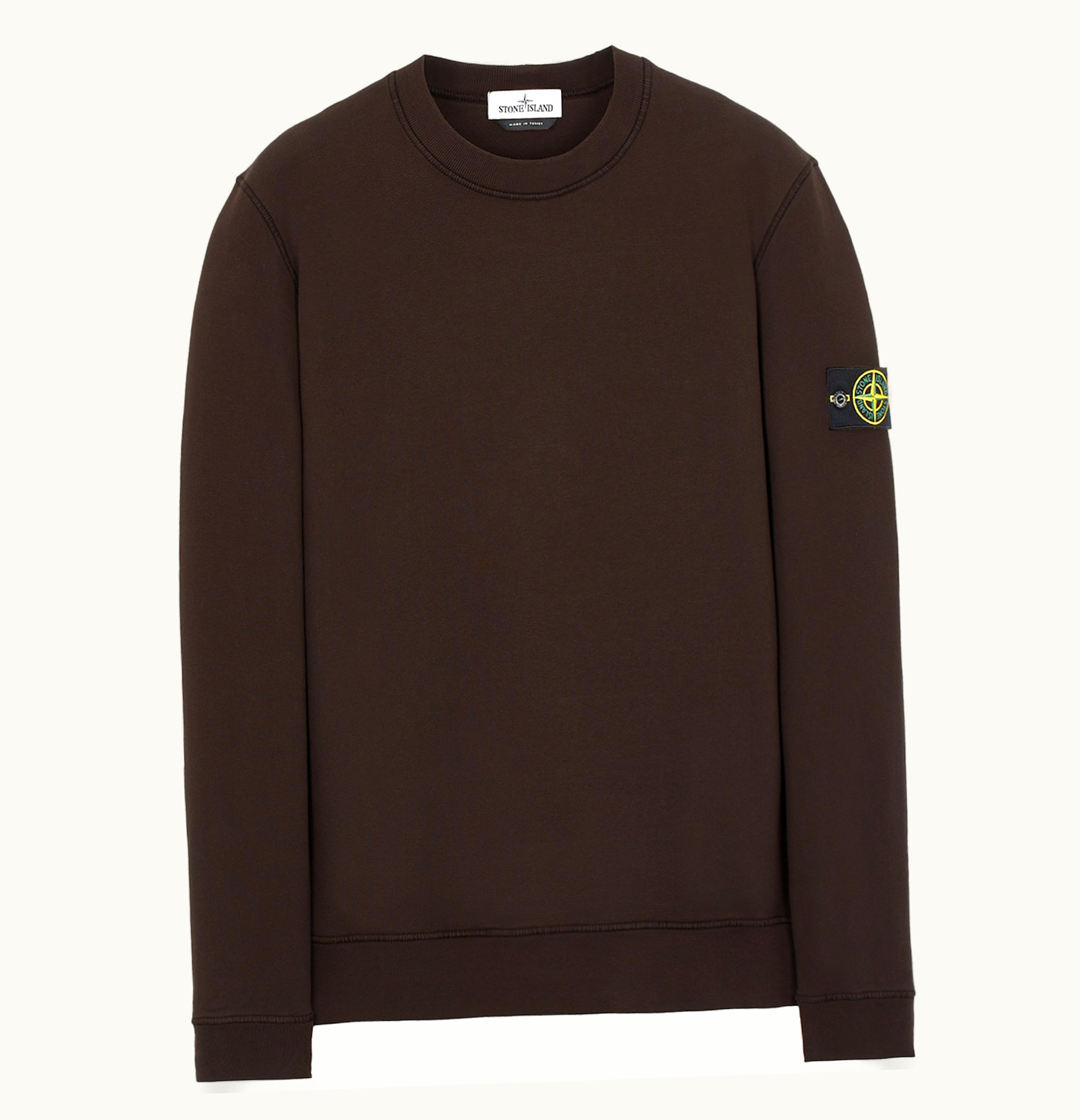 Stone Island 63020 Brushed Cotton Fleece Crewneck Dark Brown | GLINT