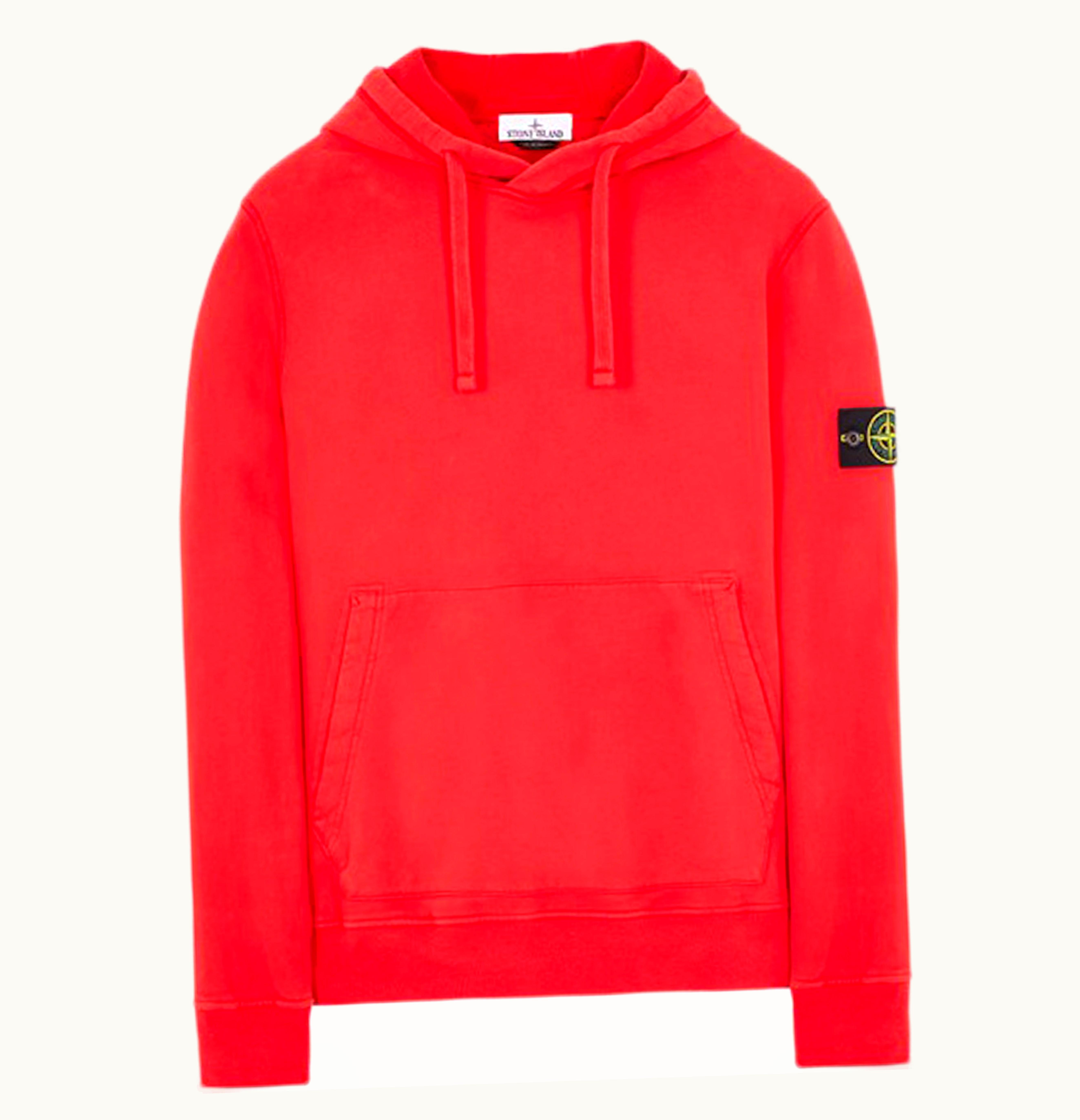 Stone Island 64120 Brushed Cotton Fleece Hooded Sweater Red | GLINT