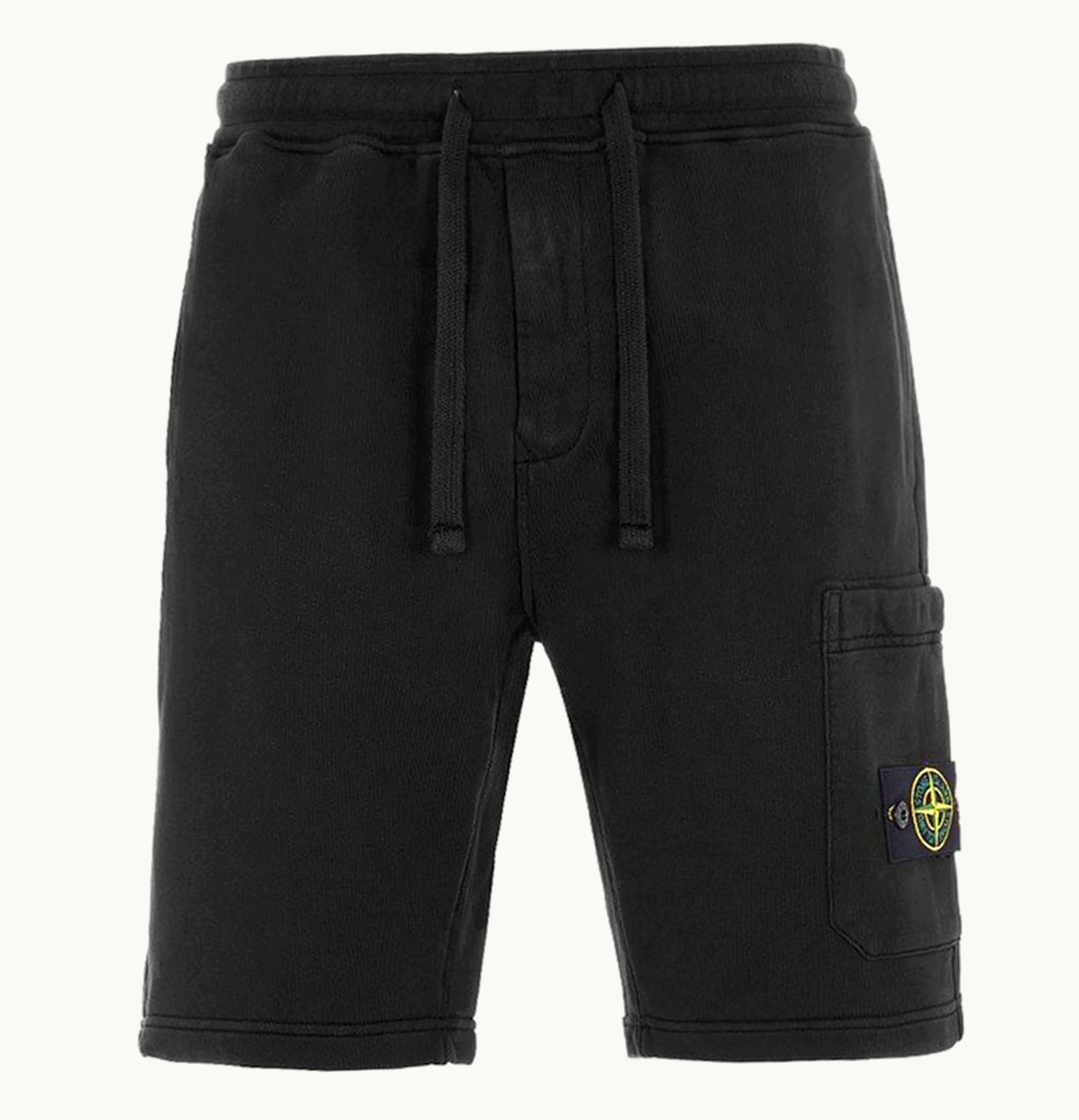 Stone Island 64651 Cotton Fleece Garment Dyed Shorts Black | GLINT