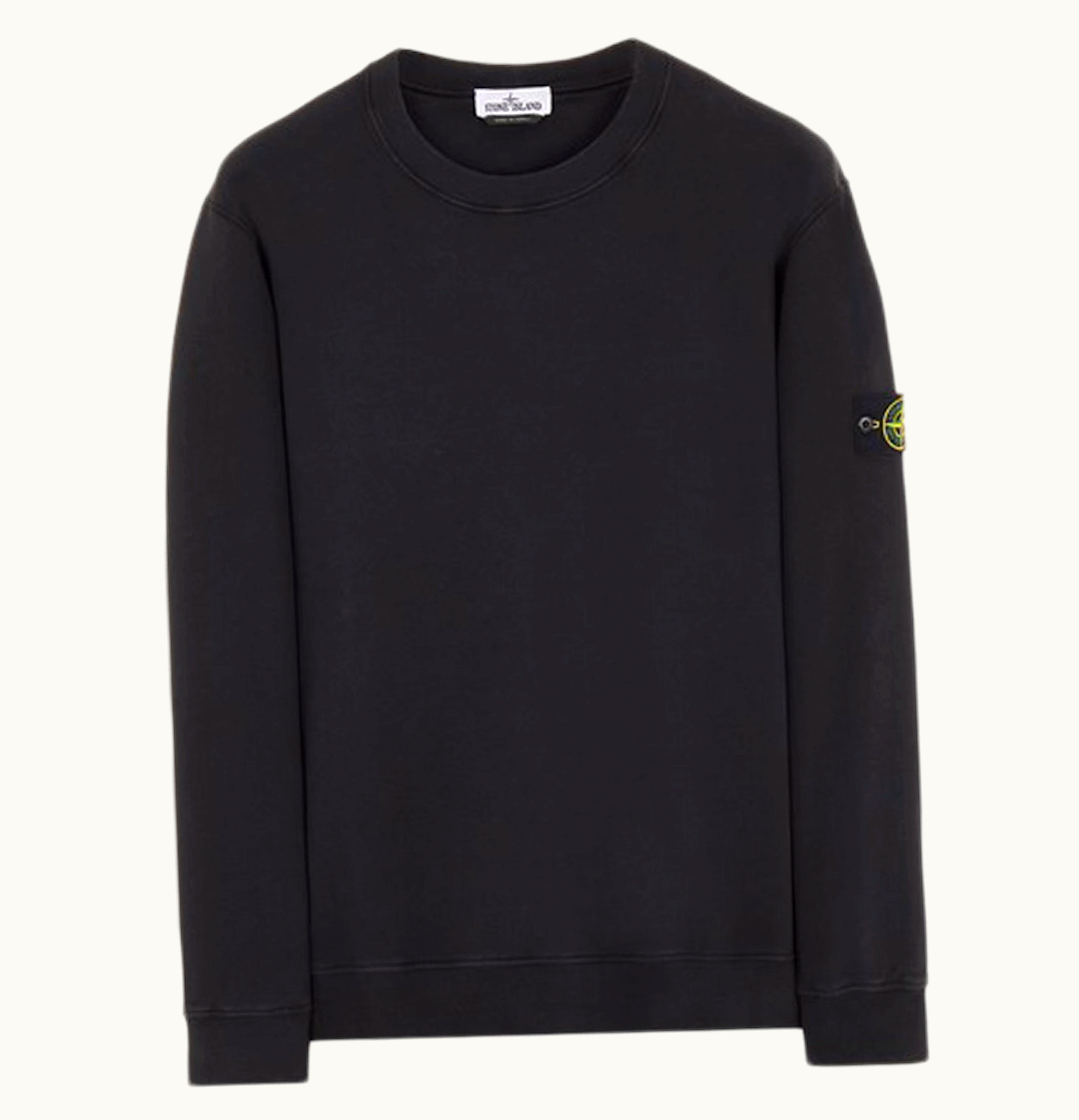 Stone Island 63020 Brushed Cotton Fleece Crewneck Sweater Black | GLINT