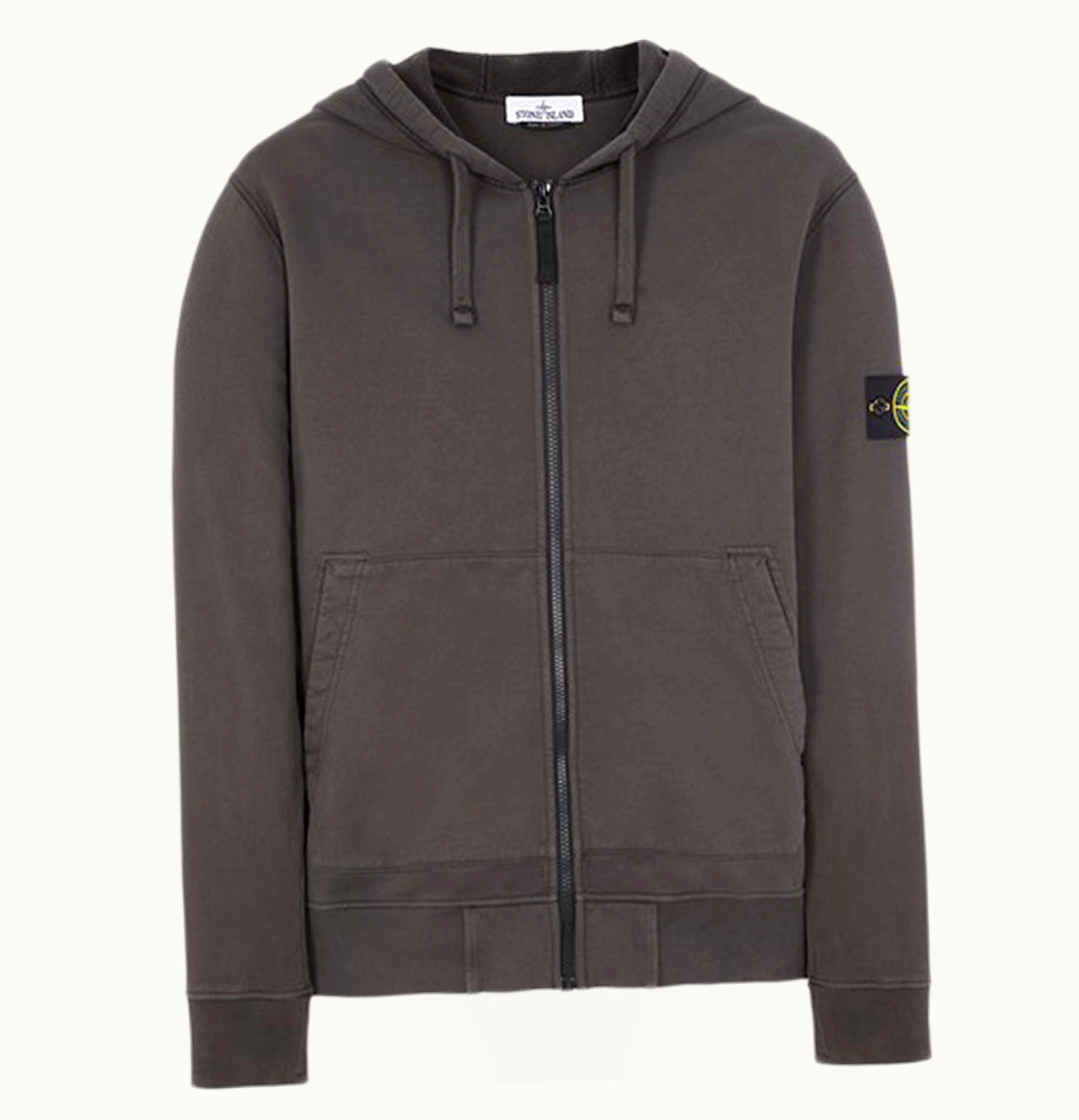 Stone Island 64220 Brushed Cotton Fleece Zip Up Hooded Sweatshirt Steel Grey | GLINT