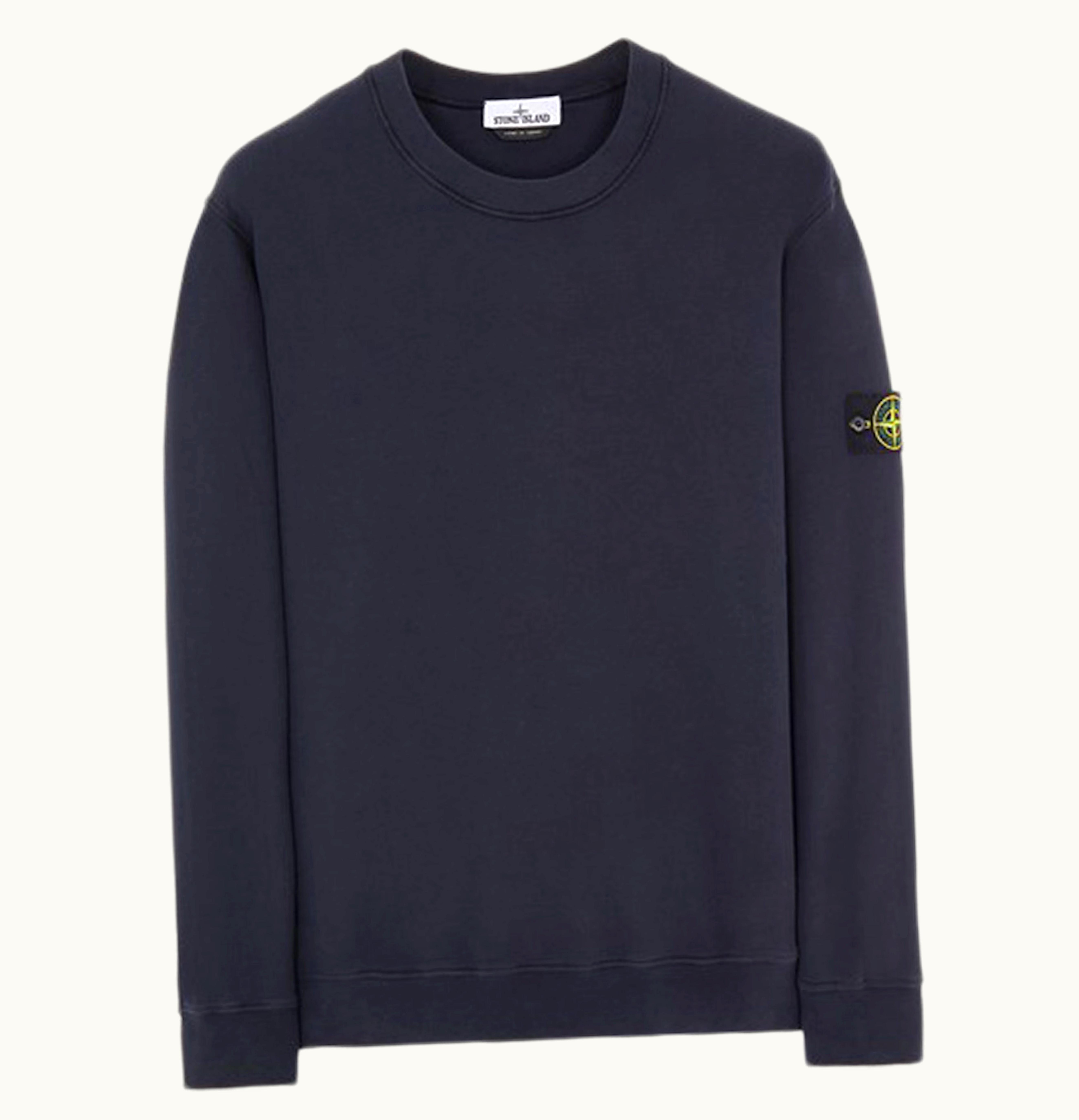 Stone Island 63020 Brushed Cotton Fleece Crewneck Sweater Blue | GLINT