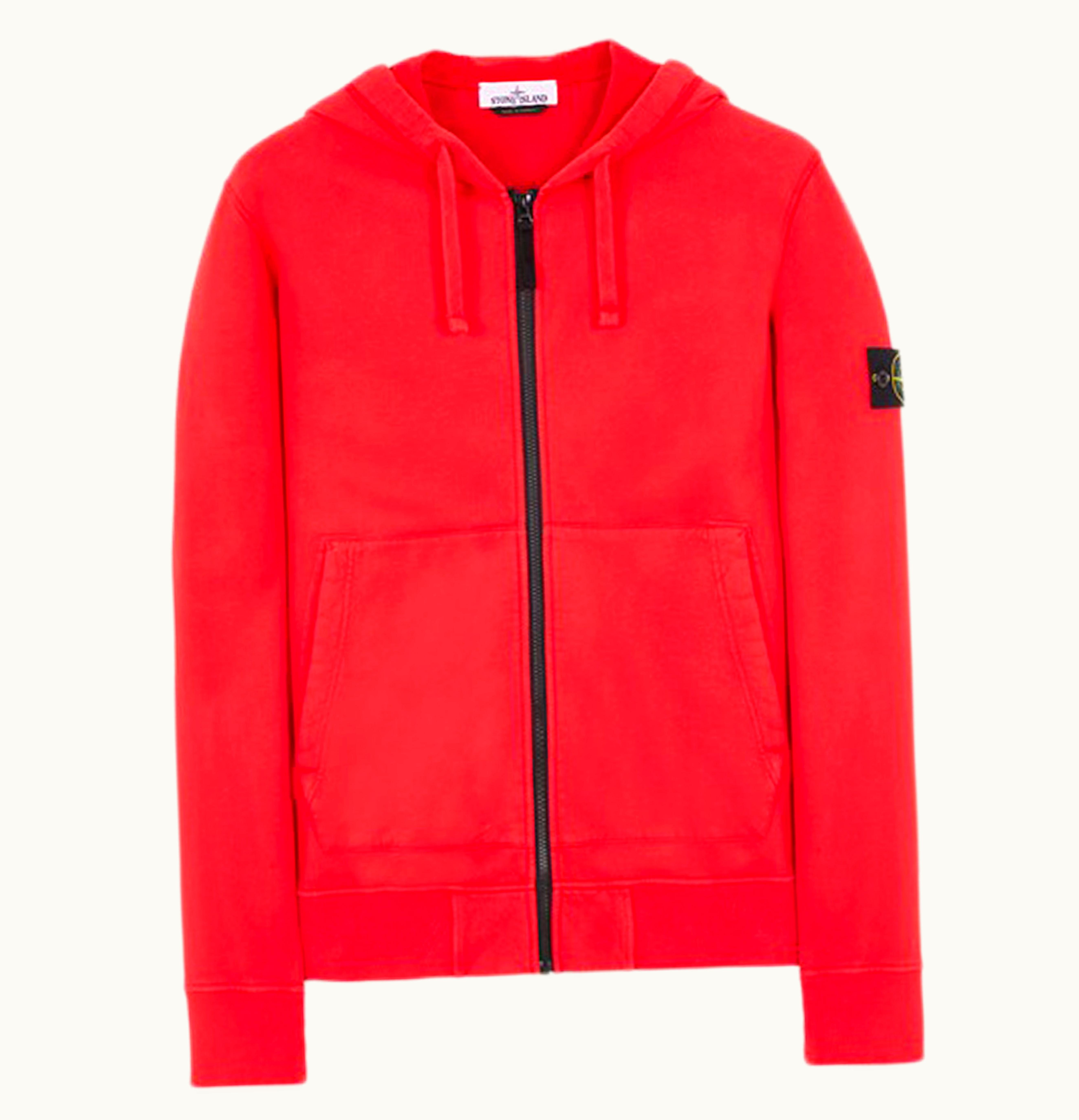 Stone Island 64220 Brushed Cotton Fleece Zip Up Hooded Sweatshirt Red | GLINT