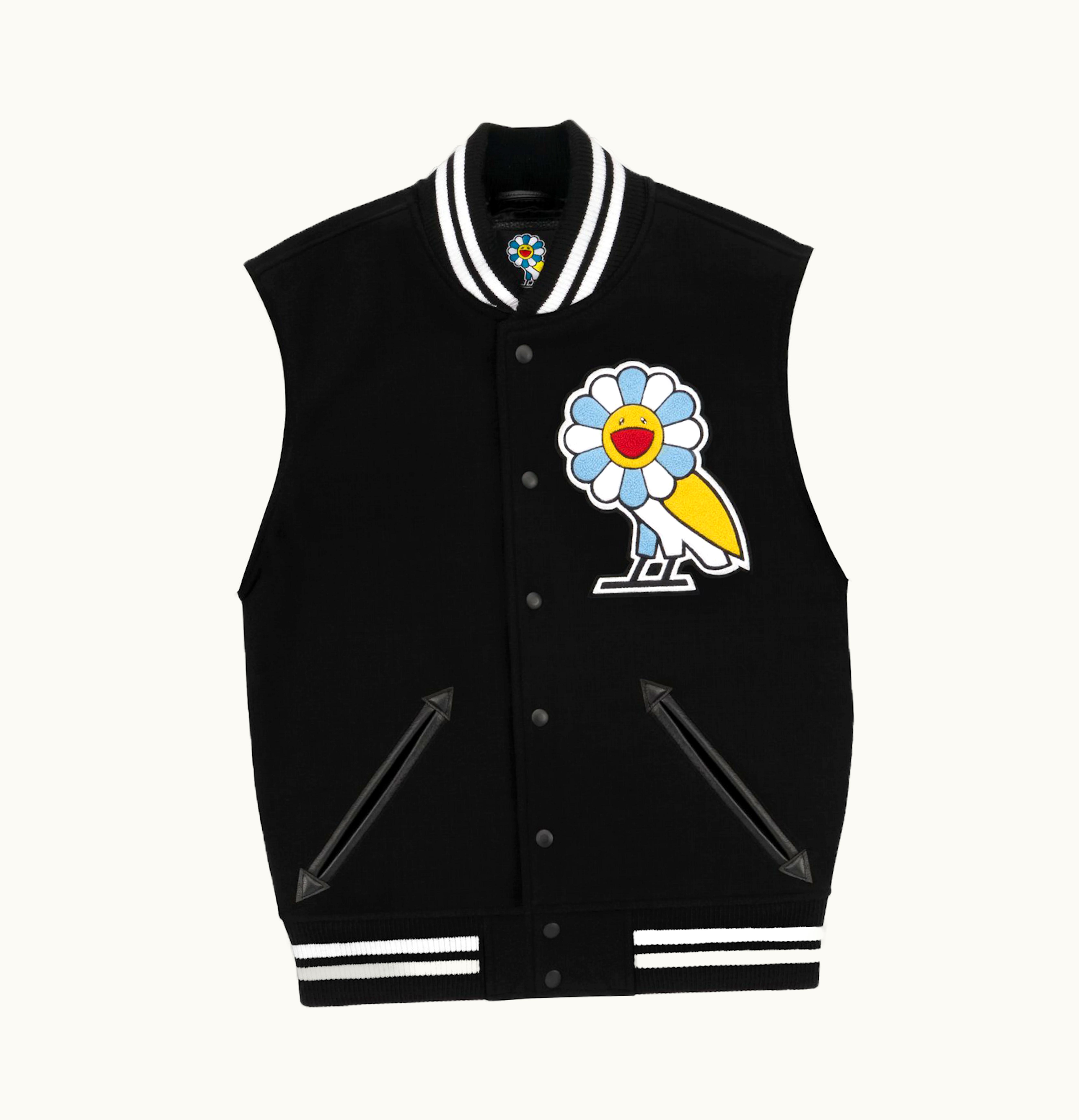 Takashi Murakami x OVO Varsity Jacket Black White | GLINT