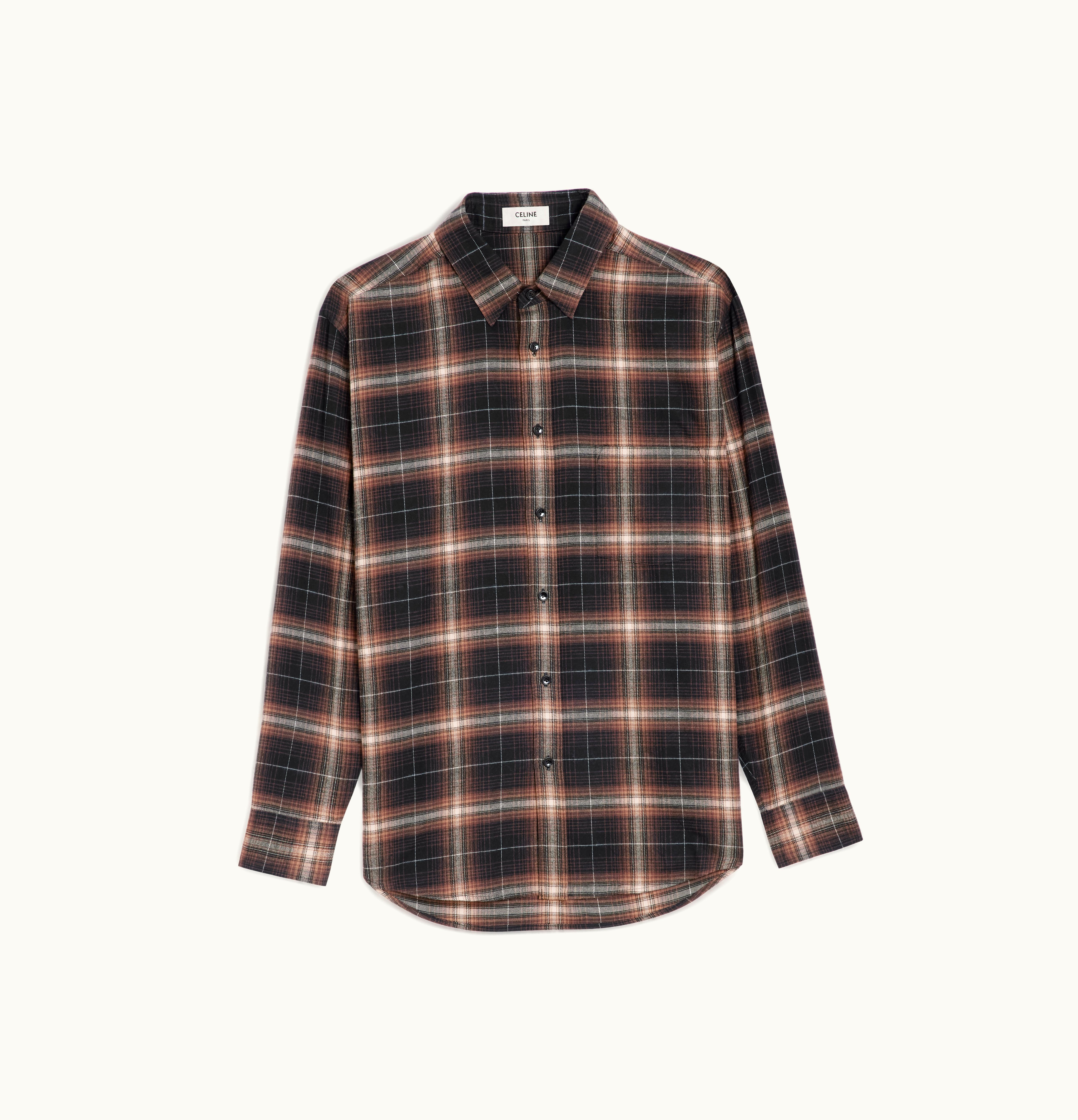 Celine Oversized Shirt In Cotton Checks Brown | GLINT