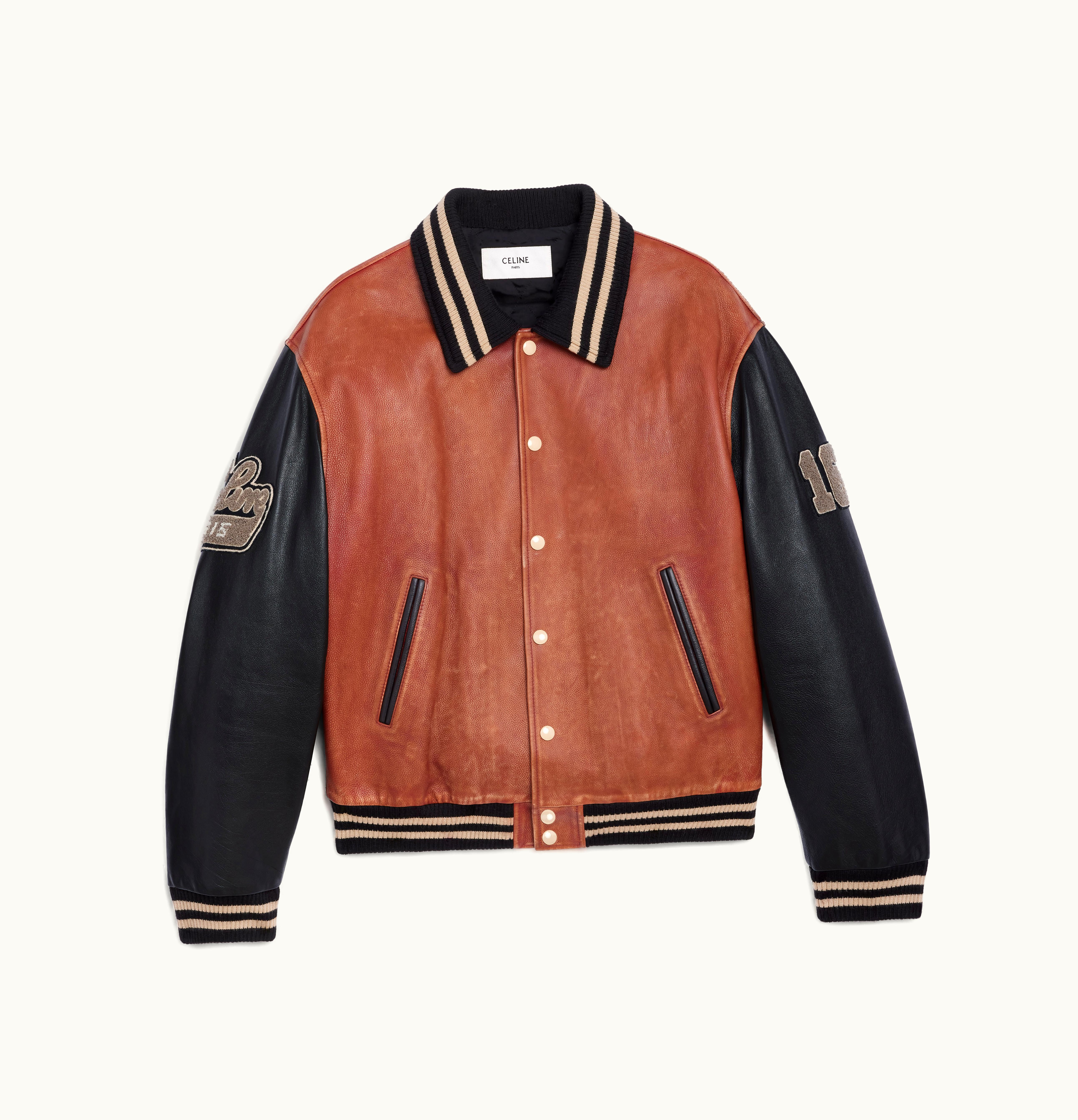 Celine Oversized Teddy Jacket In Grained Calfskin Peach/ Black | GLINT