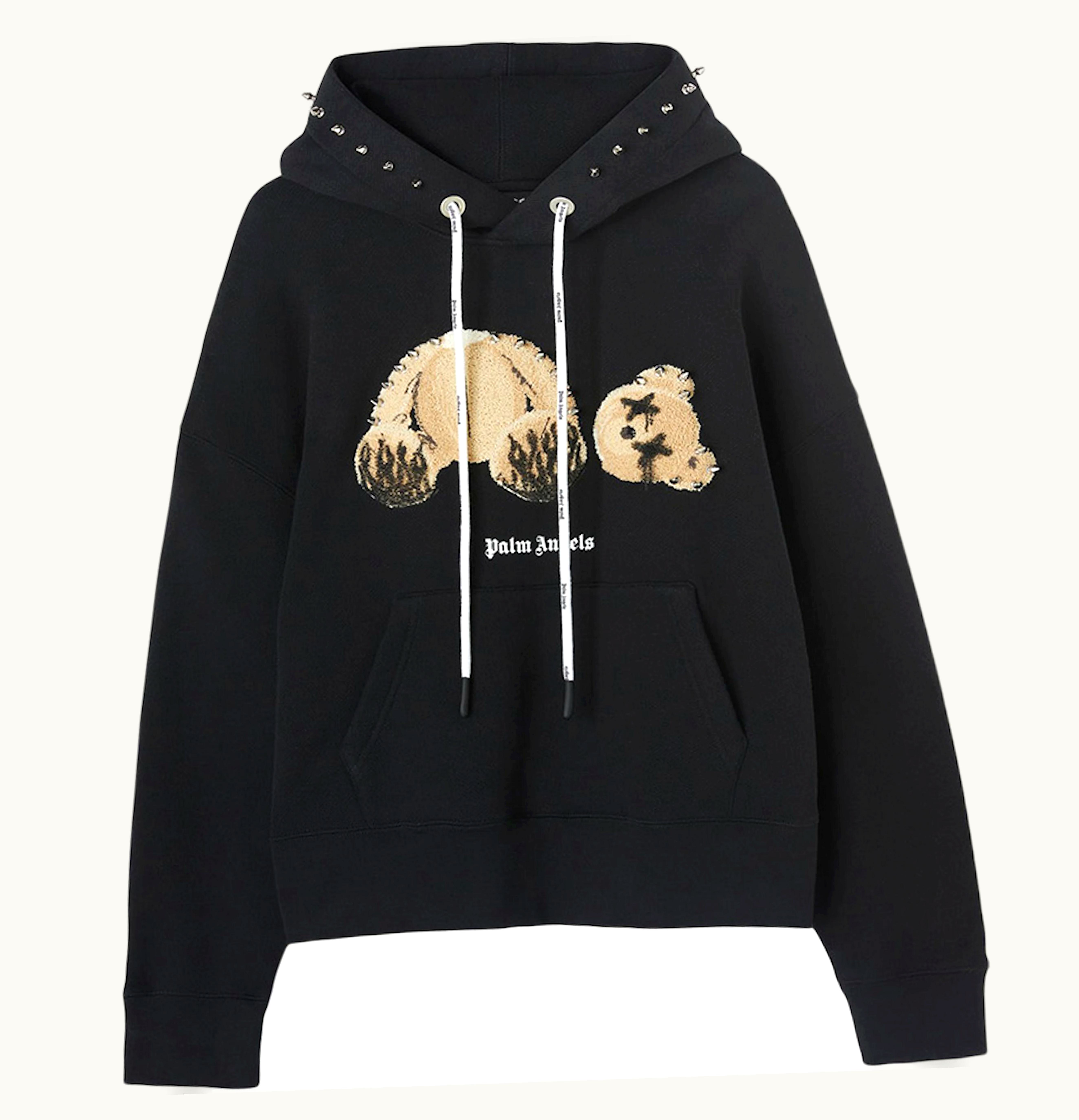 Palm Angels' PA Punk Bear is a black cotton t-shirt featuring a playful Punk-inspired bear graphic printed on the chest. The bear is depicted with a mohawk hairstyle, punk piercings, and studded accessories, giving the t-shirt a rebellious and edgy aesthetic. The brand's iconic logo is also embroidered on the left sleeve in white. Made in Italy, the t-shirt is constructed from 100% premium quality cotton that provides comfort and durability. With its punk-rock vibe and high-quality construction, the PA Punk Bear t-shirt is the perfect addition to any streetwear enthusiast's wardrobe.