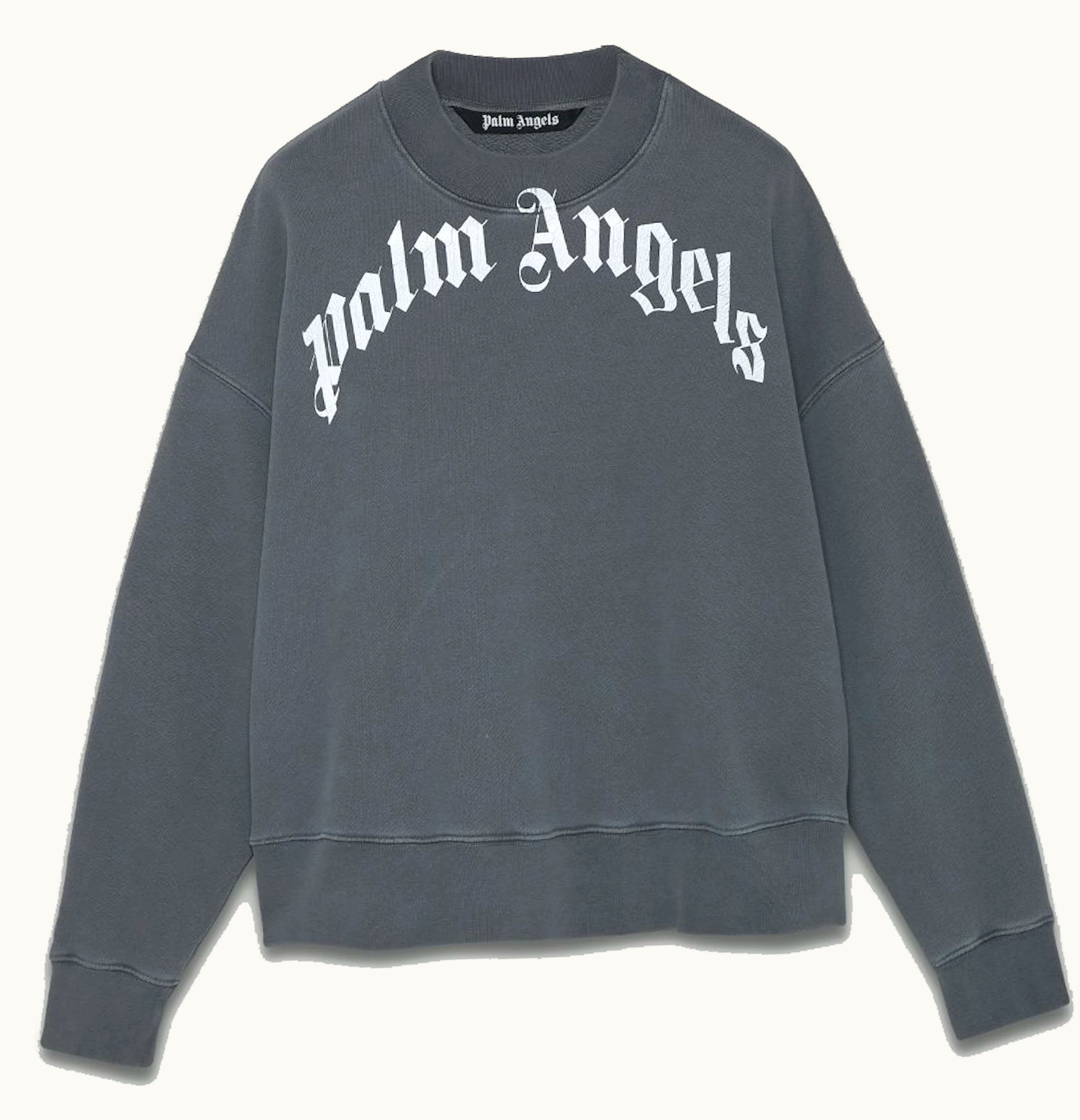 Palm Angels Curved Logo Sweatshirt Black White | GLINT