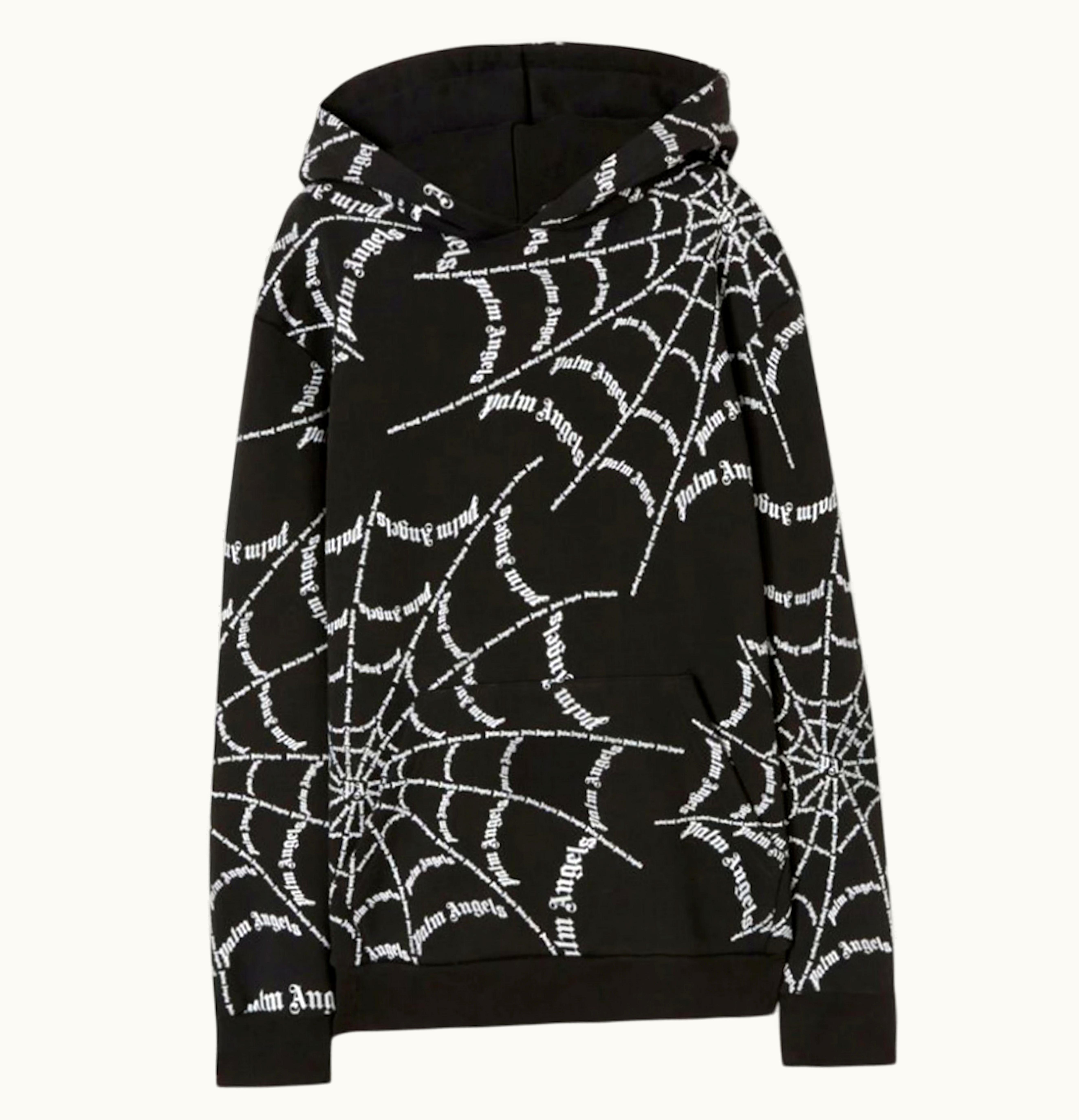 Palm Angels Spider Web Hoodie Black Off White | GLINT