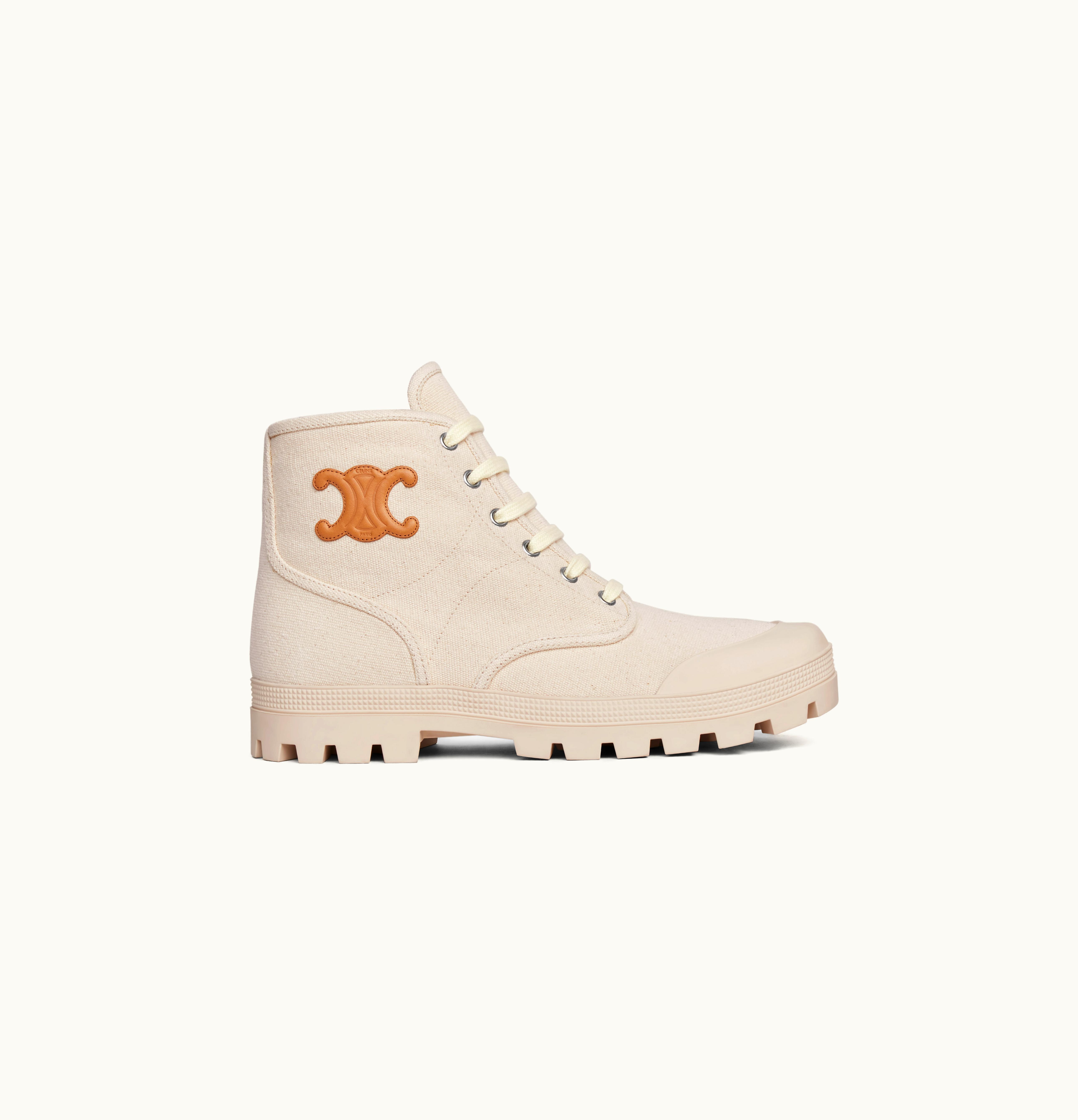 Celine Patapans Lace Up Boot With Triomphe Patch In Canvas Mastic | GLINT