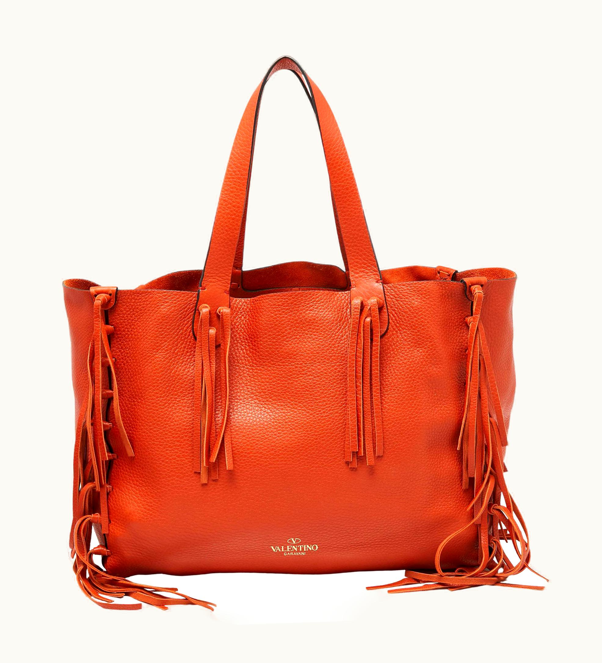 Valentino Orange Pebbled Leather Fringe C-Rockee Tote UZ0611026 | GLINT