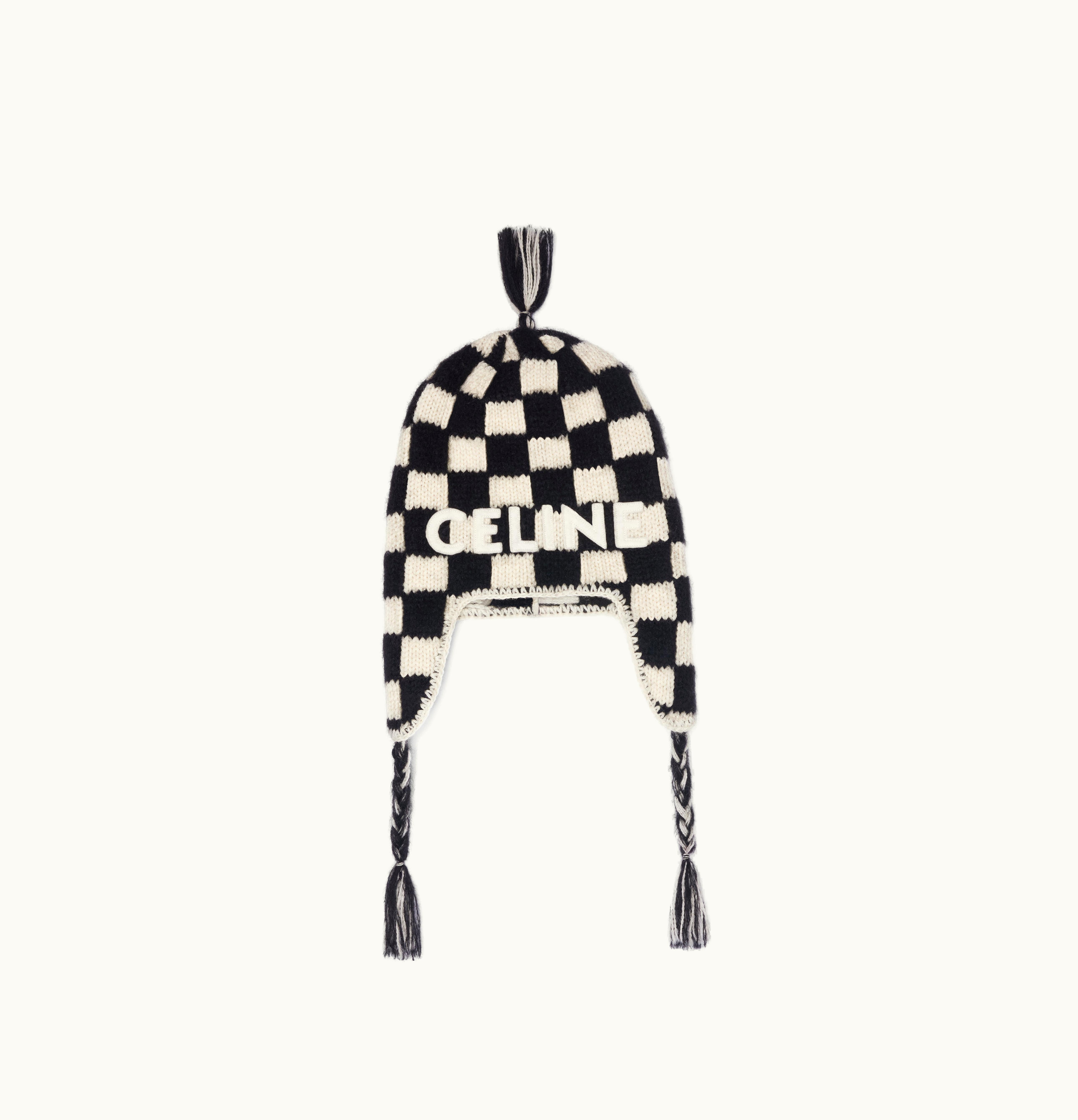 Celine Peruvian Beanie In Checked Alpaca Wool Black / Off White | GLINT