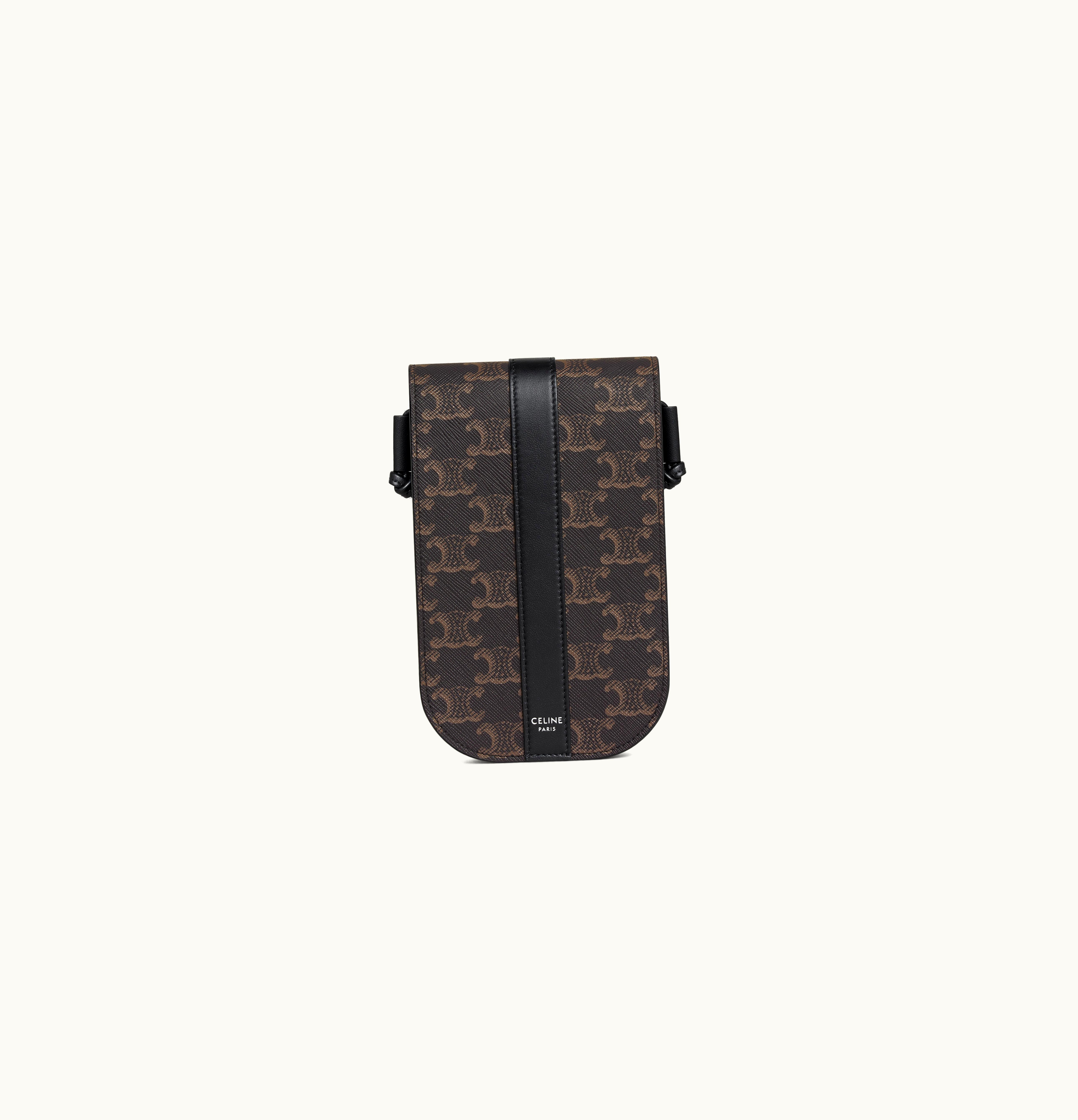 Celine Phone Pouch In Triomphe Canvas And Calfskin Black | GLINT