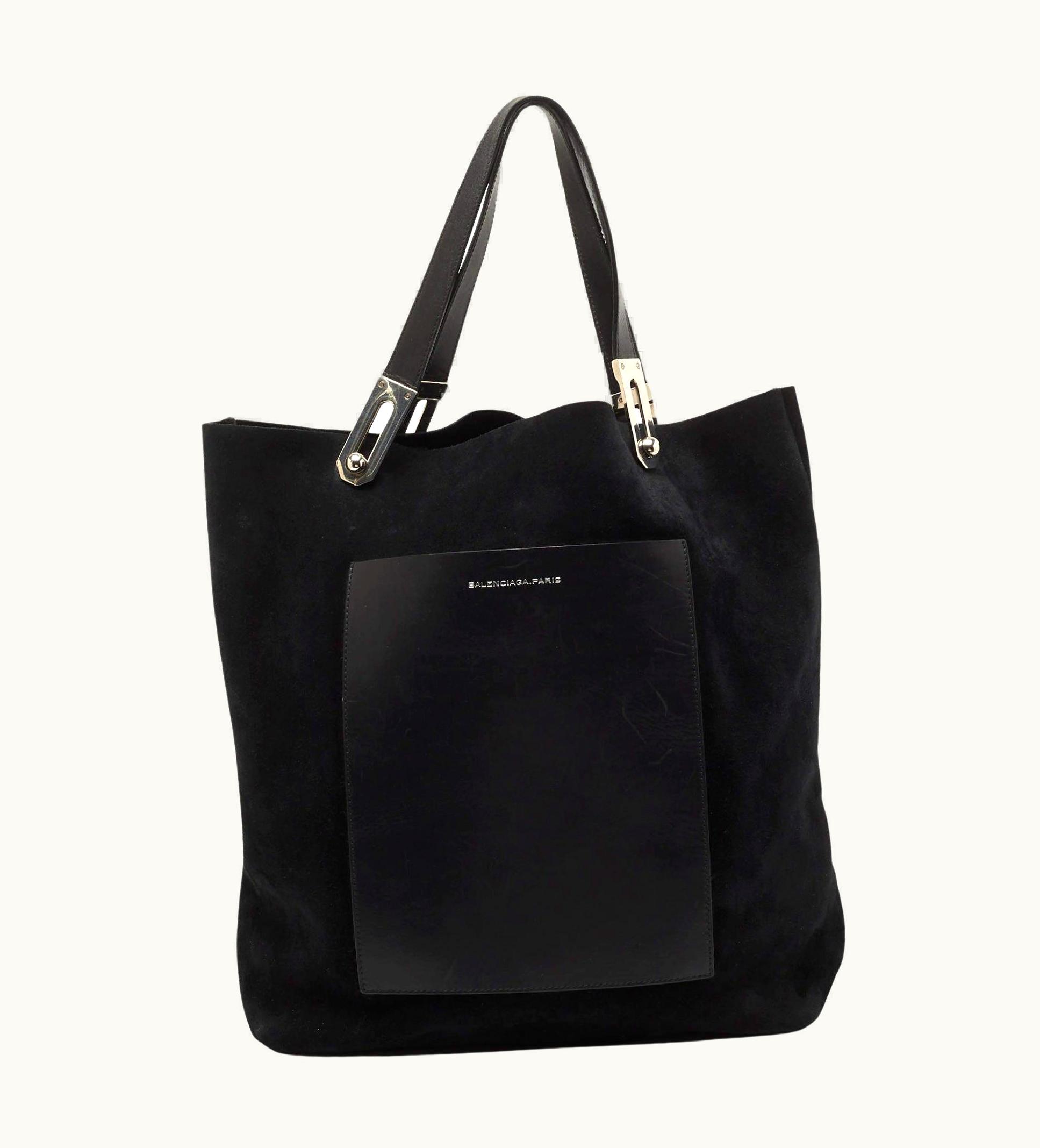 Balenciaga Black Leather And Suede Pocket Tote | GLINT