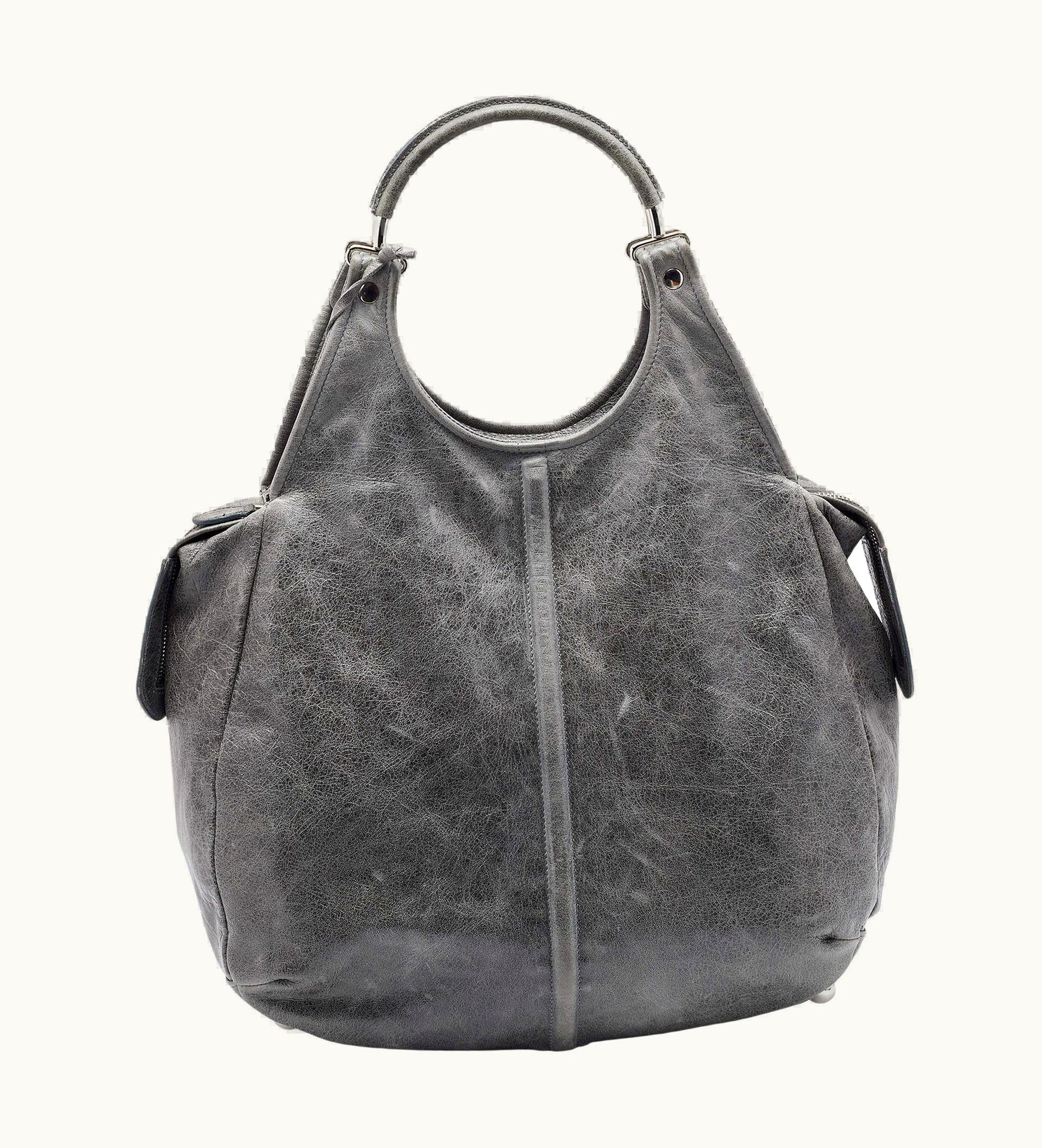 Balenciaga Grey Leather Pompon Shoulder Bag | GLINT