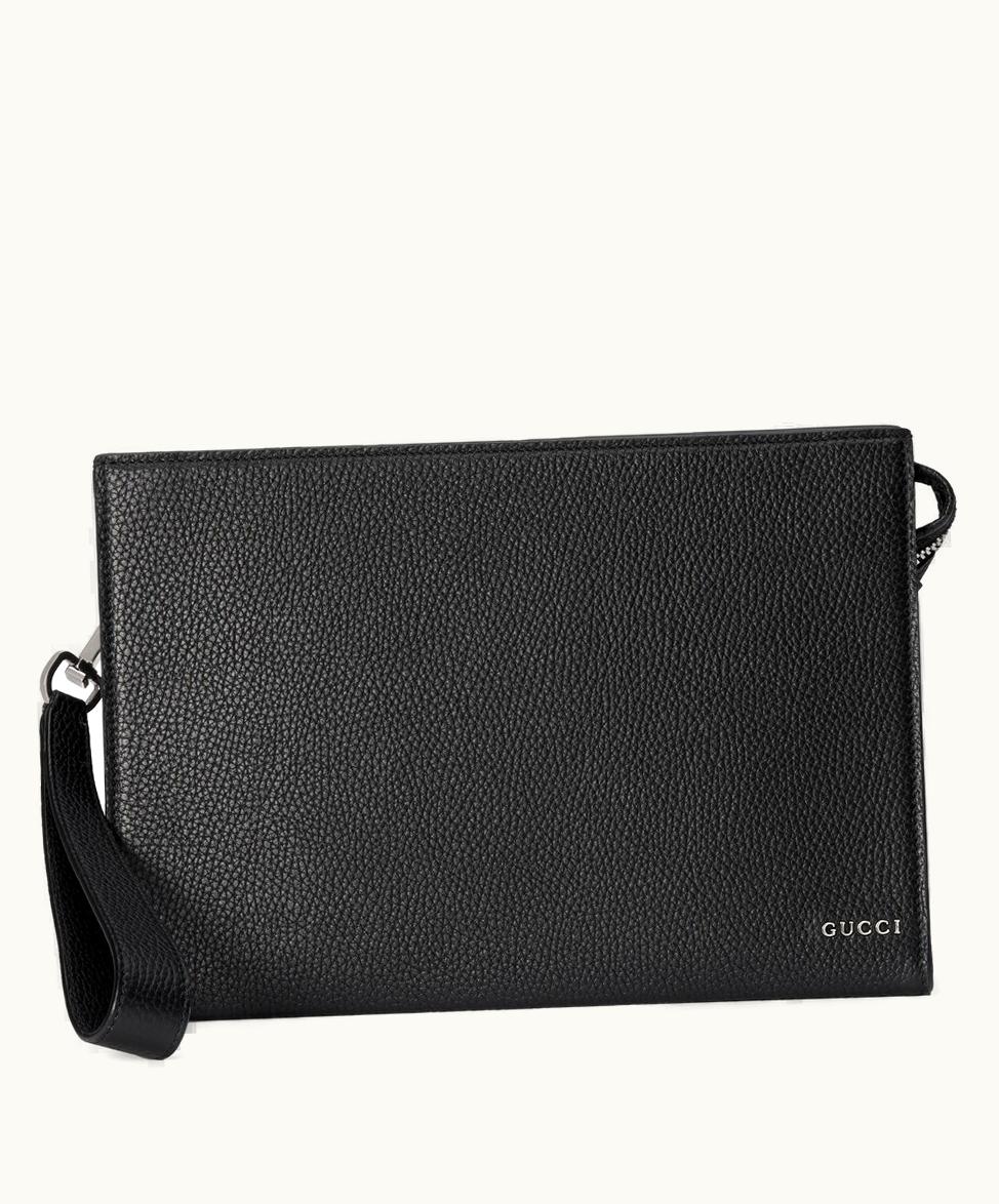 Pouch With Gucci Logo Black Leather | GLINT