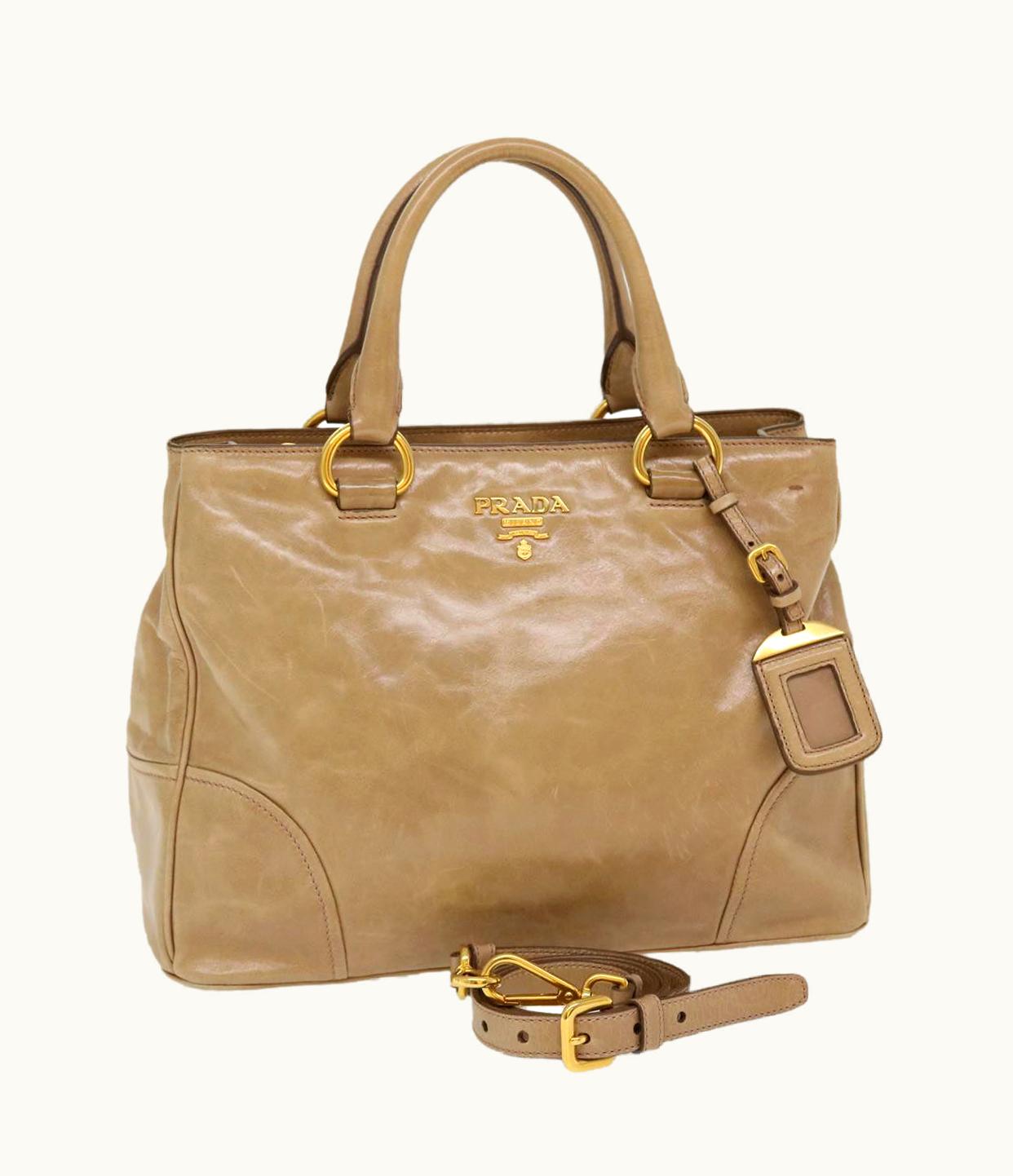 Prada 2Way Shoulder Bag Leather Brown | GLINT